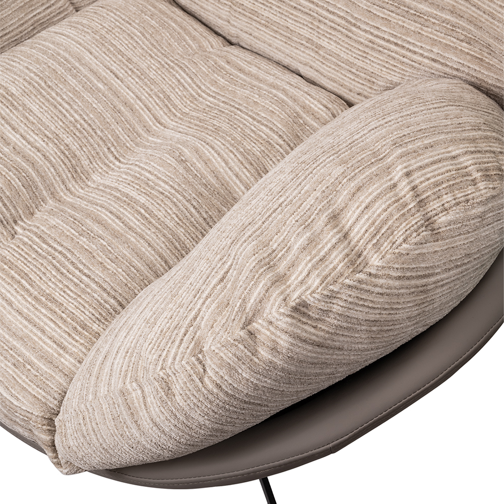 Лаундж-кресло вращается на 360 градусов, и для полного релакса советуем дополнить его удобной оттоманкой.