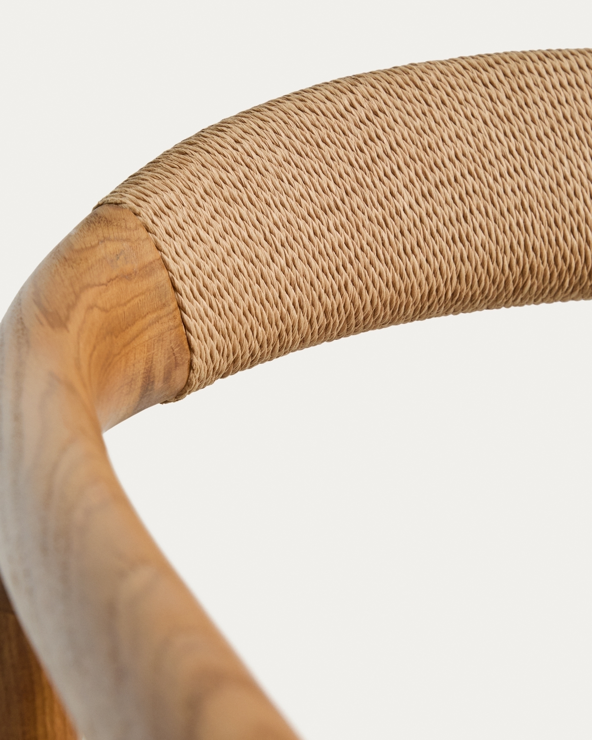 Derile сочетает в себе ручную работу и сбалансированные пропорции в изделиях, которые передают ощущение гармонии и тепла. Изготовленная из массива дуба, сертифицированного по стандарту FSC™ 100% с соблюдением цепочки поставок и модели ответственного лесопользования, конструкция имеет уникальную текстуру, раскрывающую характер материала. Матовое покрытие подчеркивает текстуру древесины и придает ей аутентичный вид. Сиденье и спинка сплетены вручную из бумажного шнура — легкого материала, обеспечивающего комфорт и сбалансированный визуальный эффект.