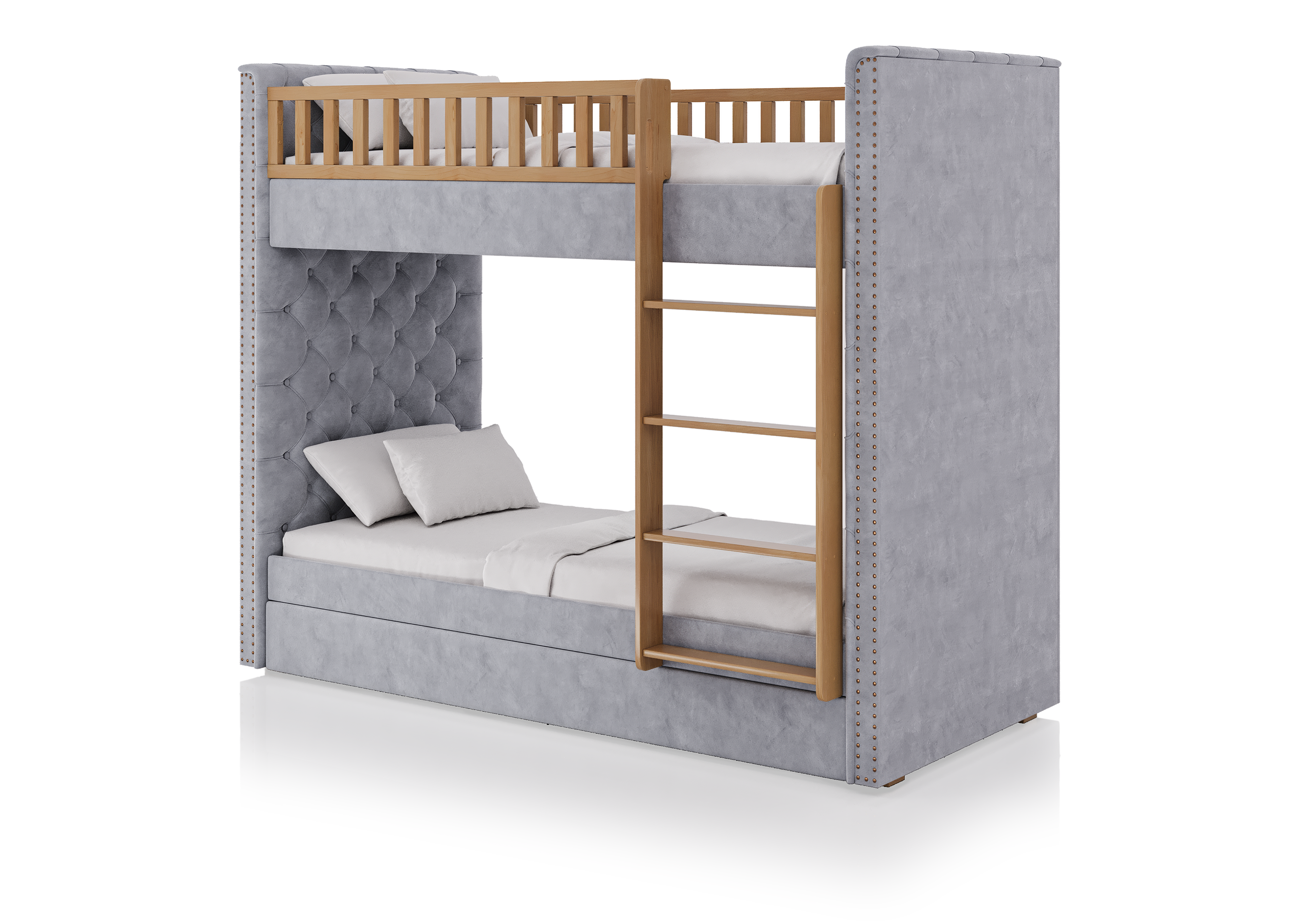 Мягкая уютная двухъярусная кровать Elit soft с каретной стяжкой