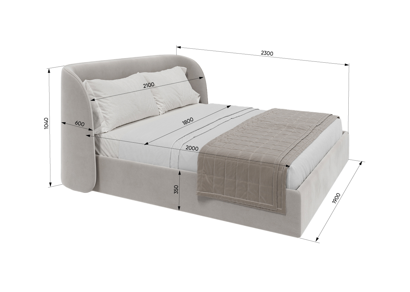 Двуспальная кровать Сlassic с подъемным механизмом и ящиком для хранения Размер спального места 180*200 см Внешние габариты: 230*210*104 см Каркас выполнен из массива березы Обивка: ткань велюр