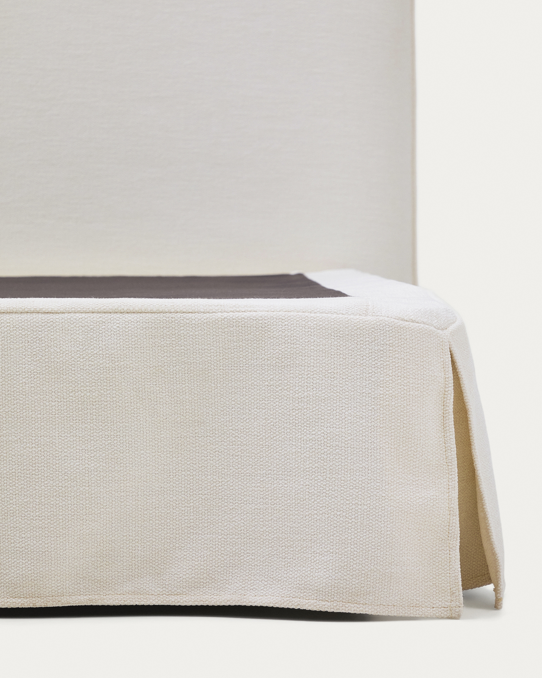 Кровать со съемным чехлом сочетает в себе комфорт, функциональность и дизайн, создавая элегантное дополнение к спальне. Чехол из высококачественного плотного шенилла имеет мягкую бархатистую текстуру и обработан против пятен, что облегчает уход и продлевает срок службы. Внутренняя часть изготовлена из сертифицированной древесины FSC Mix Credit, полученной из ответственно управляемых источников. Основание кровати обито мягкой тканью, поэтому основание не требуется, обеспечивая жесткость и устойчивость матраса. Ткань сертифицирована по стандарту OEKO-TEX® STANDARD 100, что гарантирует безопасность и экологичность производства. Изголовье кровати, произведенное локально в Европе, способствует сокращению выбросов CO₂ и отражает приверженность качеству, комфорту и устойчивому развитию.
