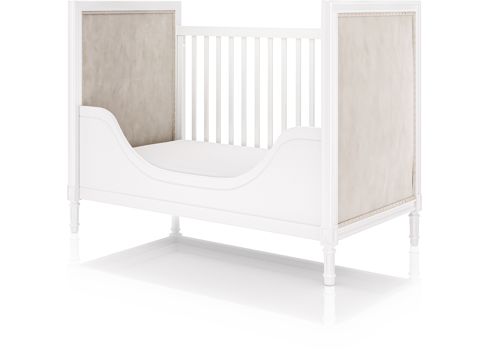 Для предотвращения падения во сне, кроватку можно дополнить изящным защитным бортиком.