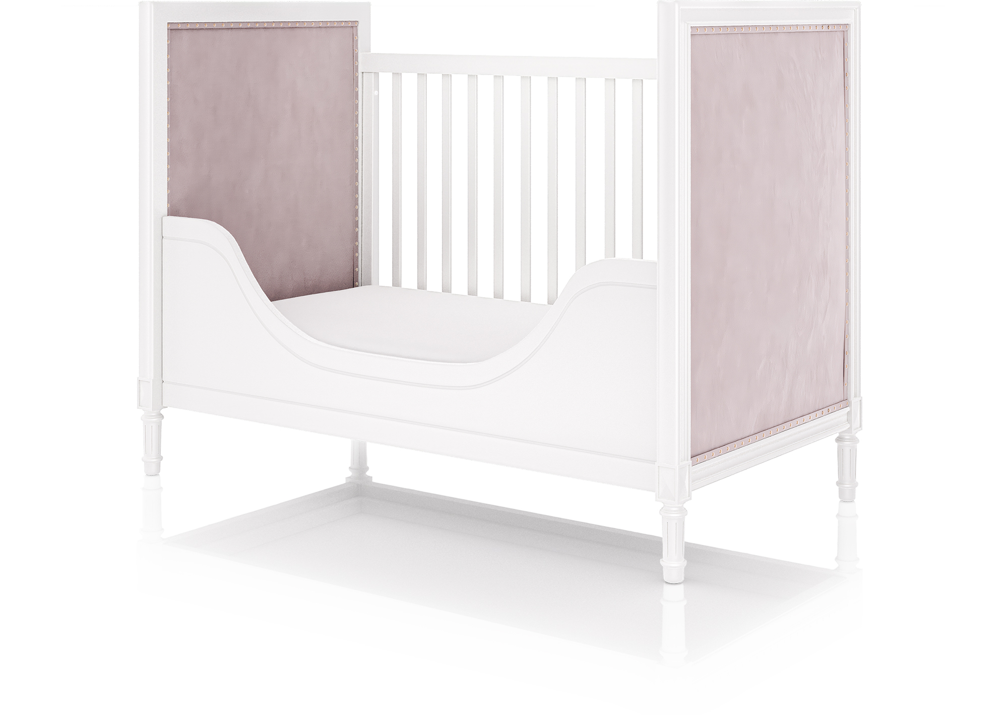 Для предотвращения падения во сне, кроватку можно дополнить изящным защитным бортиком.