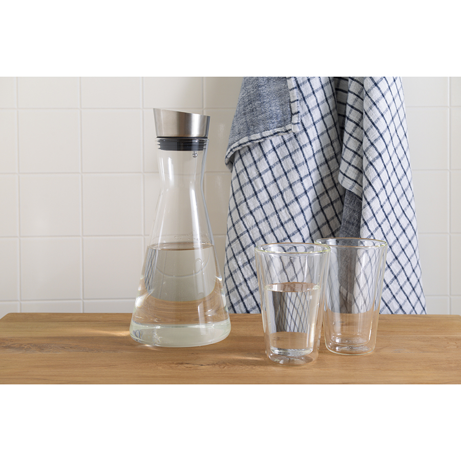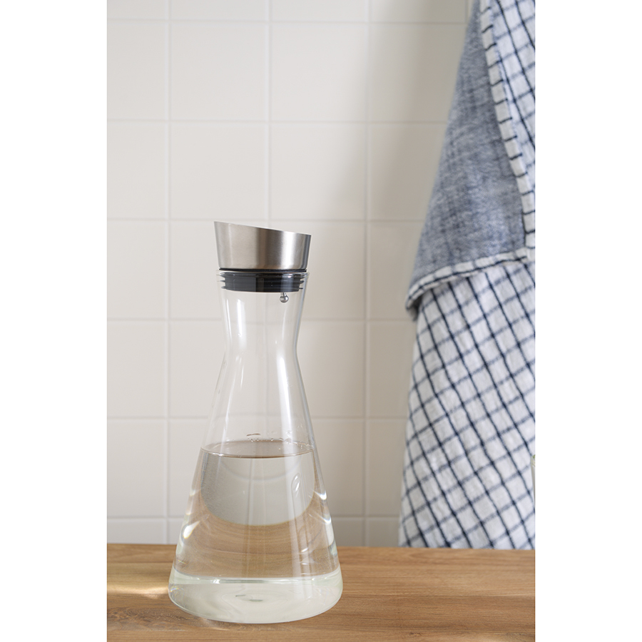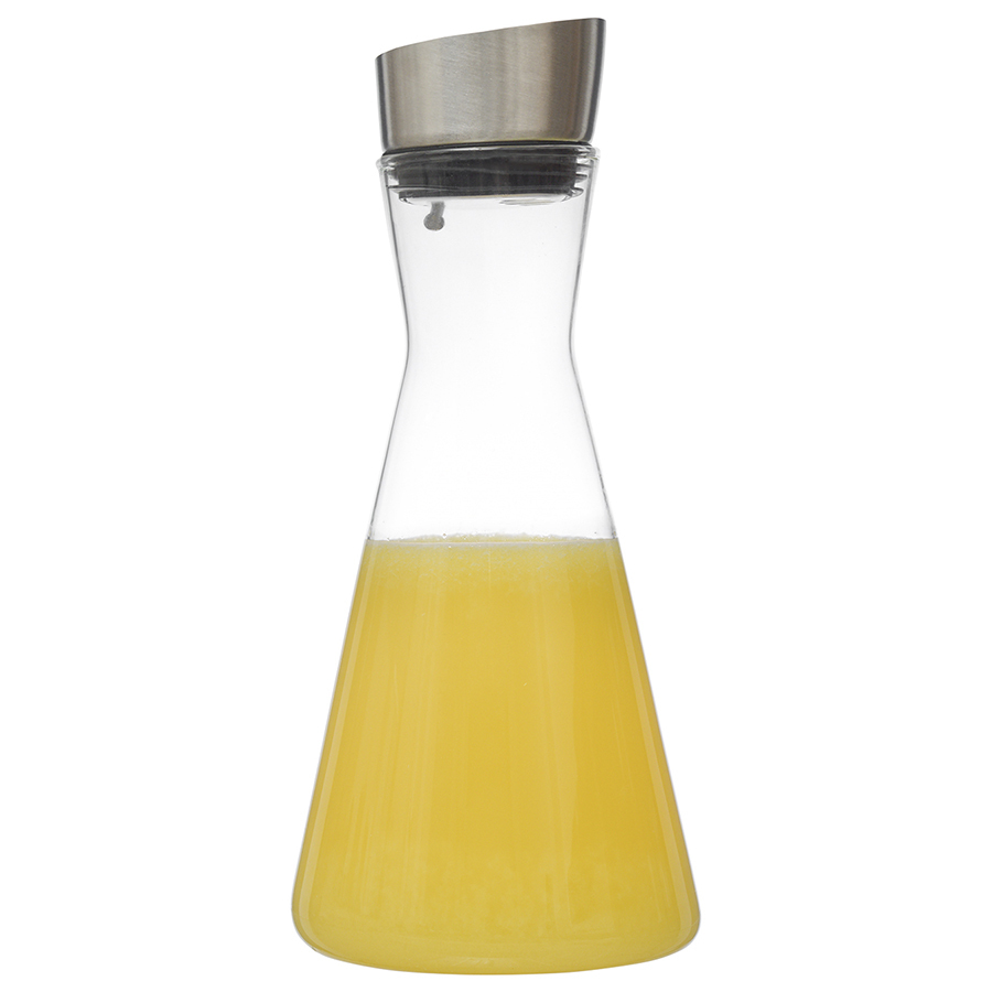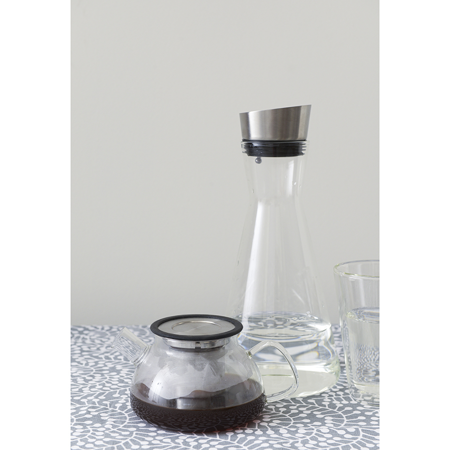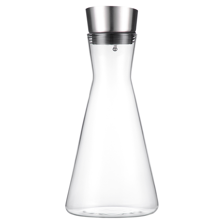 Кувшин для воды Simpel представляет собой емкость из боросиликатного стекла объемом 1,6 л, которую можно использовать для холодных и горячих напитков. Особенности и преимущества: - В отличие от обычного, боросиликатное стекло обладает повышенной прочностью, легко выдерживает воздействие высоких и низких температур. - Материал является химически инертным, не меняет вкус и запах напитков, не впитывает загрязнения и легко моется. - Крышка из стали оснащена силиконовым уплотнителем, который обеспечивает плотное закрывание и исключает проливание. Материалы: боросиликатное стекло, нержавеющая сталь, силикон. Объем: 1,6 л. Можно мыть в посудомоечной машине на верхнем уровне (без крышки), замораживать и использовать в микроволновой печи (без крышки).