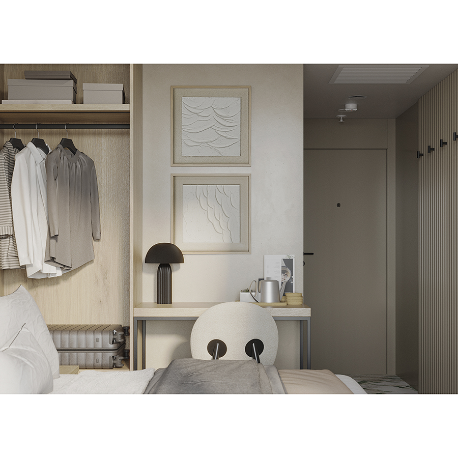 - Комбинация гладких и рельефных фактур создает красивый визуальный эффект, делая дизайн интересным.