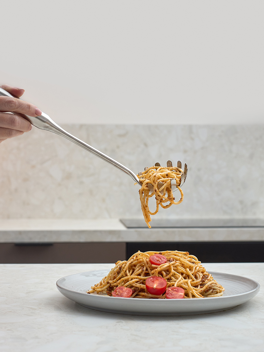 Специальной ложкой Pure легко извлечь готовые спагетти из кастрюли. Зубчики обеспечат удобный захват продукта. Прорези позволят стечь лишней жидкости и сделать подачу блюда более эстетичной.
