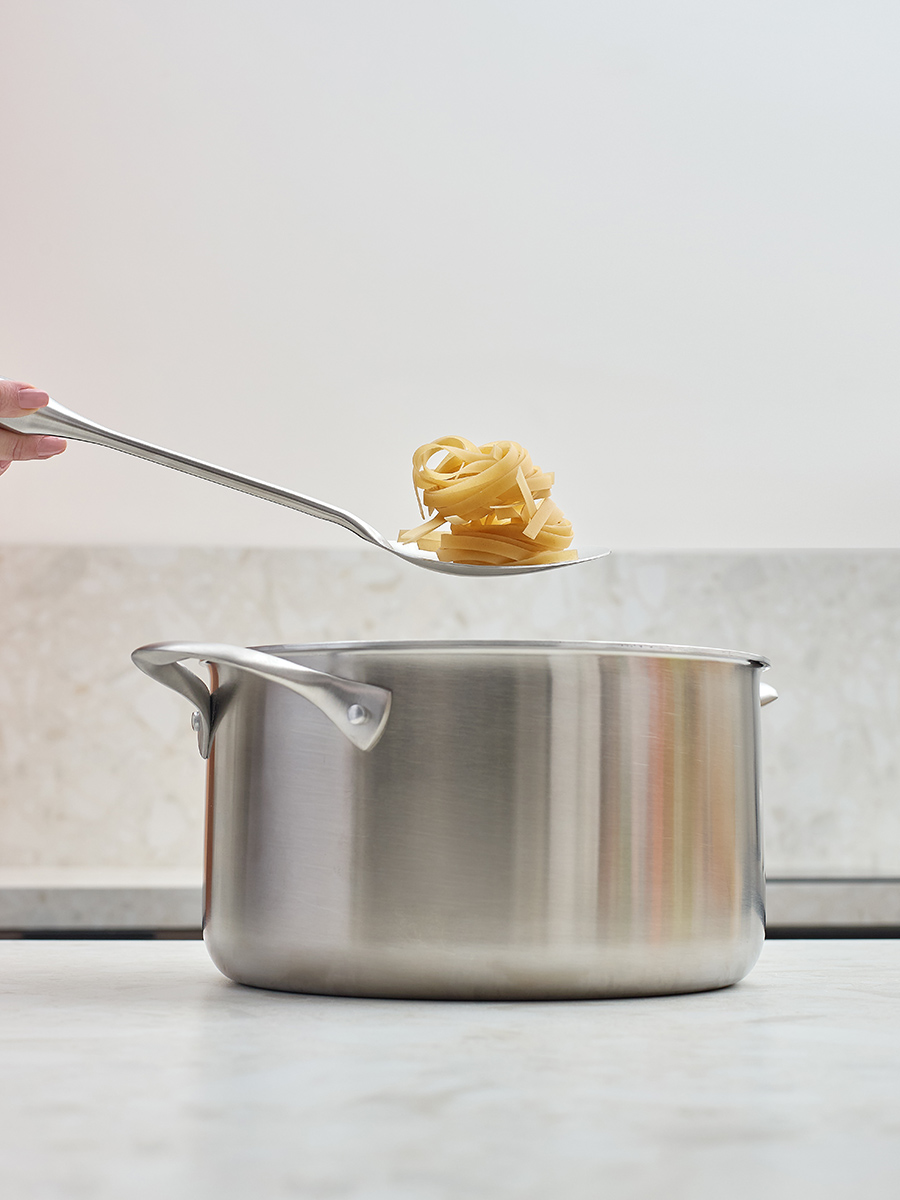 Коллекция Pure включает столовые приборы и кухонные принадлежности. Это изделия из нержавеющей стали, которые удачно сочетают лаконичную эстетику и практичную функциональность. Цельнометаллическое исполнение обеспечивает их повышенную прочность и долговечность. Универсальный минималистичный дизайн органично вписывается в интерьер любой кухни, а продуманная эргономика делает процесс готовки комфортным. Стальные изделия не впитывают запахи. Все предметы коллекции можно мыть в посудомоечной машине. Ручки поварских принадлежностей снабжены отверстием для компактного вертикального хранения, что экономит пространство на кухне.