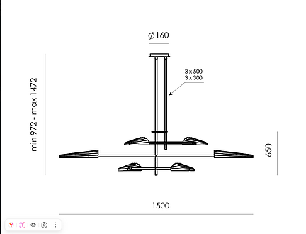 Размеры люстры: высота (мин-макс) – 125-185, ширина – 89 см.