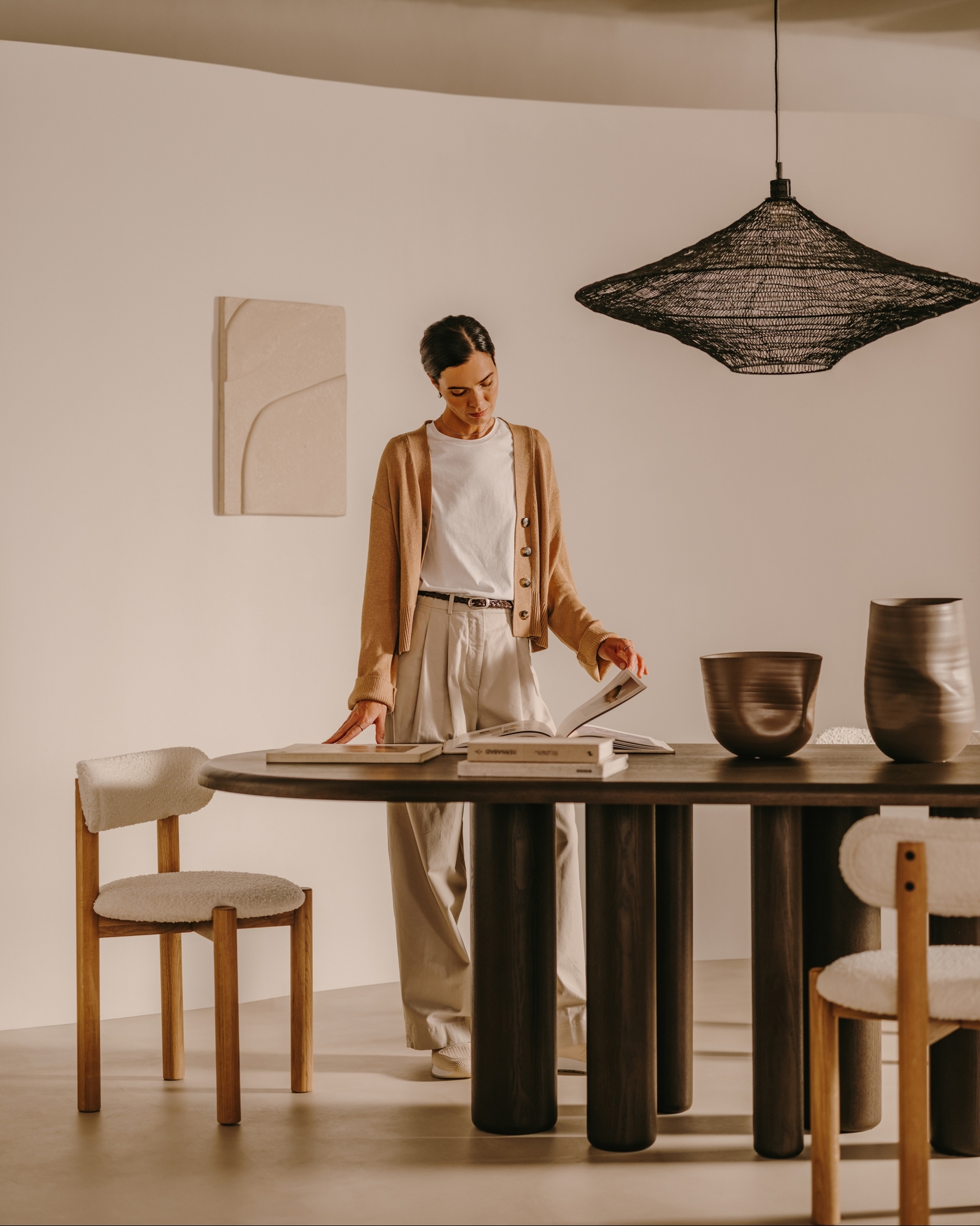 Команда Kave Home создала стол Mailen современного дизайна из ясеневого шпона и ножками разного диаметра, которые делают его настоящим героем. Поднимите свою гостиную на новый уровень.