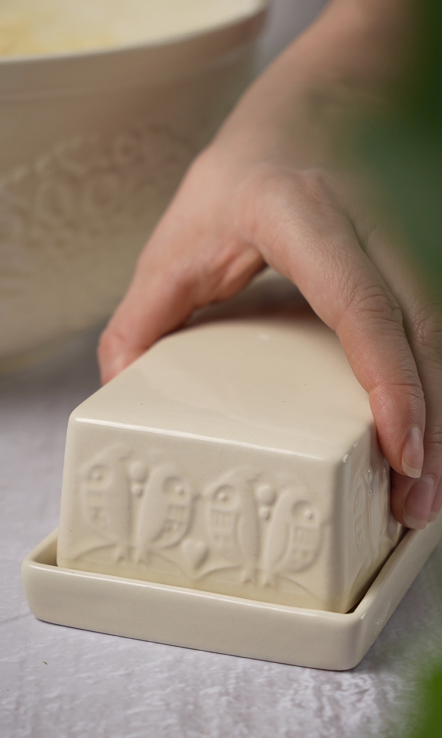 Масленка из коллекции Birds of Paradise – качественная посуда из экологичной каменной керамики, которая дольше сохраняет продукты свежими и великолепно дополняет любую сервировку. Отличительной особенностью серии является объемный узор природной тематики, придающий дизайну элегантные нотки. Благодаря высокой прочности и устойчивости материала к износу изделие не теряет привлекательный внешний вид на протяжении всего срока службы. Покрытие глазурью облегчает уход, обеспечивает декоративность и дополнительную защиту от внешних воздействий. Масленка состоит из поддона для масла с небольшими бортиками и объемной крышки прямоугольной формы.