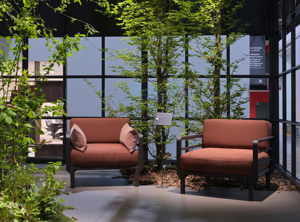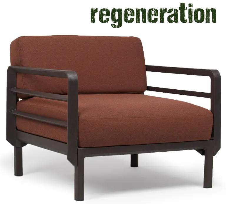 Дизайн: Raffaello Galiotto. На выставке Salone del Mobile 2024 в Милане Nardi представили новую коллекцию модульной мебели Maximo, чья изысканная цветовая палитра стала общей нитью атмосферного внутреннего и наружного пространства, создаваемого дизайнерами. Maximo - это новый модульная коллекция с каркасом из регенерированной пластика и тканей с высоким содержанием переработанных компонентов, который, начиная с одного модуля кресла, позволяет быстро и легко создавать бесчисленные конфигурации благодаря системе крепления спинки и подлокотников. Изысканный, эстетически привлекательный дизайн: чистые и сбалансированные линии развиваются горизонтально, создавая ощущение глубины и длины; структура из переработанного пластика является цельной и прочной, но визуально облегченной за счет модульных треугольных секций и закругленных деталей. Большие объемы, удобное, глубокое сиденье и гибкая, гармоничная модульность. Мягкие самоцентрирующиеся подушки выполнены из элегантных текстур и тканей, частично регенерированных, и отличаются высоким техническим качеством: они выдерживают пребывание на открытом воздухе, чехлы можно снимать и стирать, они доступны в четырех очаровательных цветах. В сочетании с декоративными подушками с немного другимрисунком, но идеально подходящими оттенками они придают дивану индивидуальность и мягкость. Коллекция Maximo также включает в себя журнальный столик и держатель для предметов, который можно прикрепить к сиденью, оба выполнены из переработанного пластика. Модульность и широкая цветовая гамма подчеркивают исключительную универсальность дизайна Maximo, концепцию жизни на открытом воздухе, которая простирается от домашней обстановки до индустрии HoReCa. Матовый коричневый, цвет Terra - название, которое вызывает связь и уважение к природе регенерированного материала. Изделия из пластика Nardi отличаются эксклюзивной, приятной шероховатой фактурой. Наличие тонких не идеально однородных прожилокделает каждый предмет мебели уникальным и неповторимым, непохожим на все остальные. На выходе получается продукт с отличными физико-техническими характеристиками и чрезвычайно чистая и текстурированная эстетическая привлекательность, как у земли («терра»). Мебель создается с использованием 30% переработанного стеклопластика и 70% нового материала. Тщательно продуманный процесс производства исключает влияние вторичного сырья на качество продукции. Таким образом, Nardi не только предлагает долговечные и надежные изделия, но и вносят вклад в защиту окружающей среды, давая пластику вторую жизнь. Это шаг к устойчивому будущему, где экология и качество идут рука об руку. Особенности: Каркас выполнениз регенерированного стеклопластика, рожденного в рамках проектаRegeneration и полученного путем переработки полипропиленовой мебели. Выдерживает негативное воздействие окружающей среды (осадки, ультрафиолет). Регенерированный стеклопластик может менять цвет из-за использования переработанного материала. Матовая отделка, нескользящие ножки. Изделие протестированов соответствии со стандартами. Обивка подушек - акриловая ткань Sunbrella: 50% переработанного и окрашенного в массе акрилового волокна Sunbrella, 47% окрашенногов массе волокна Sunbrella®,3% полиэстера. Светостойкость 8/8, стирка при 30°, водоотталкивающая обработка без PFAS, грязеотталкивающая 