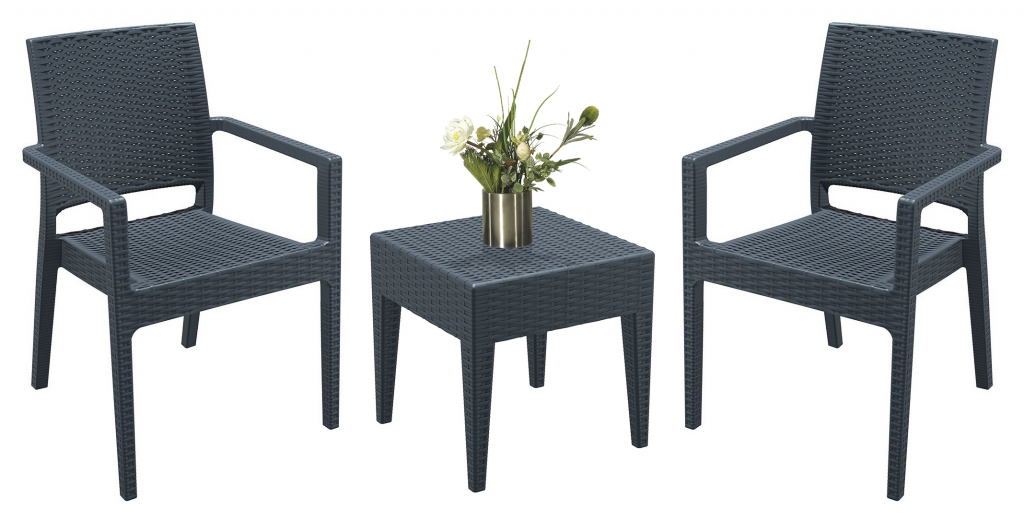 Комплект пластиковой мебели Miami Ibizaсостоит из 2-х кресел Ibizaи столика Miami(GT1009), которые станут отличным выбором для небольших пространств: балконов, террасс, зон возле бассейна. Благодаря использованию высококачественных материалов мебель долгое время не теряет своего привлекательного внешнего вида, даже несмотря на активную эксплуатацию. Благодаря устойчивости к ультрафиолетовому воздействию, кресла и стол из пластика можно использовать в том числе и на открытых площадках. Особенности комплекта: Изготовлен из прочногопогодостойкого пластика, армированного стекловолокном, с имитациейплетения натурального ротанга. Устойчивк ультрафиолету и атмосферным осадкам, выдерживает минусовую температуру до 20 градусов. Столик и кресла имеют возможность штабелирования, поэтому занимают мало место при хранении. Не имеет металлического каркаса - не ржавеет, не поддается коррозии, не требует трудоемкого ухода. Размер столика: 450х450х450мм, вес: 2.5 кг.Открыть технические характеристики. Размер кресла: 580х590х870мм, вес: 4.75 кг.Открыть технические характеристики.