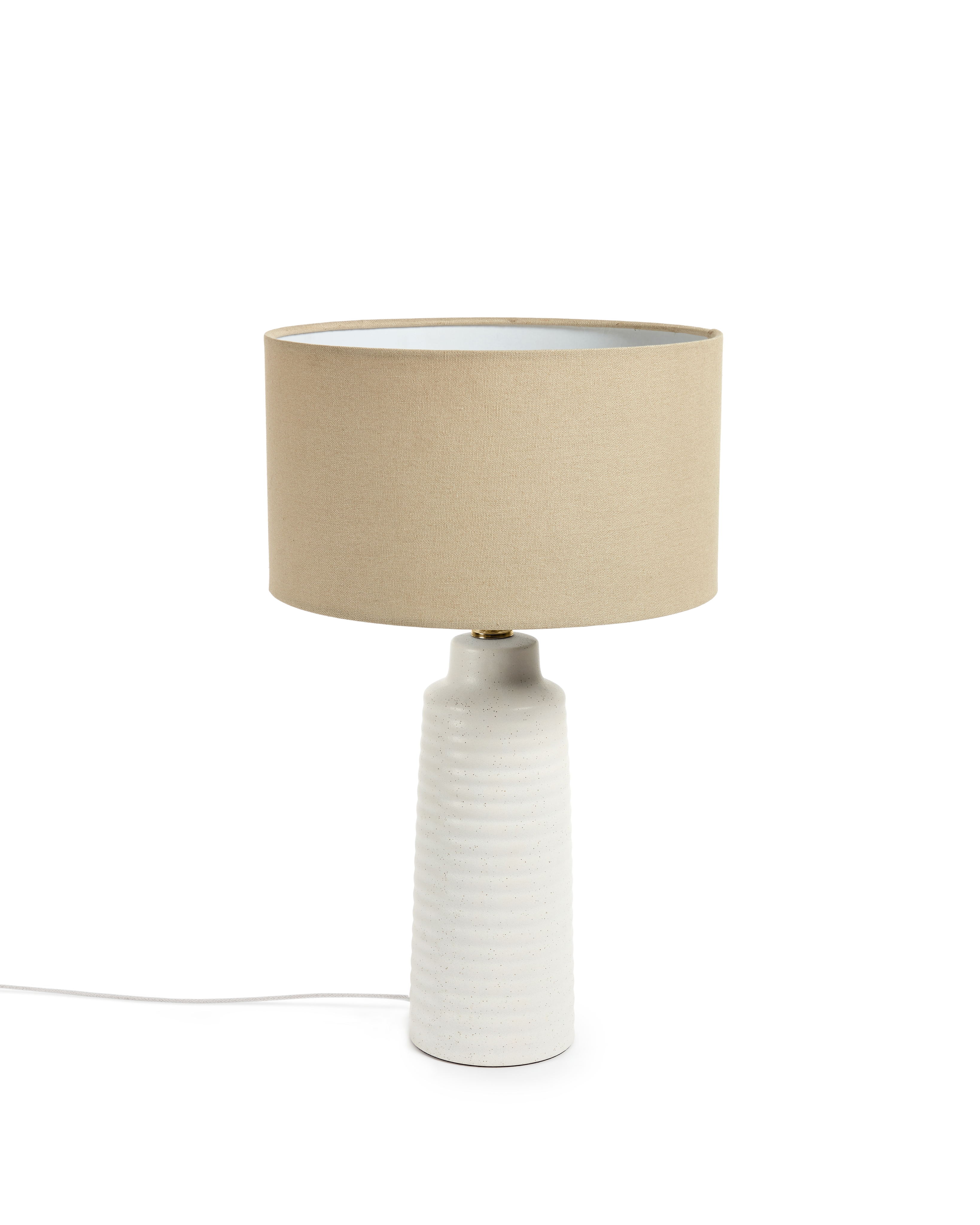 Керамическая настольная лампа с белой отделкой. Льняной абажур с натуральной отделкой. Переключатель в комплекте. Чтобы осветить этот дизайн, добавьте одну из наших лампочек Bulb LED E27 мощностью менее 40 Вт.