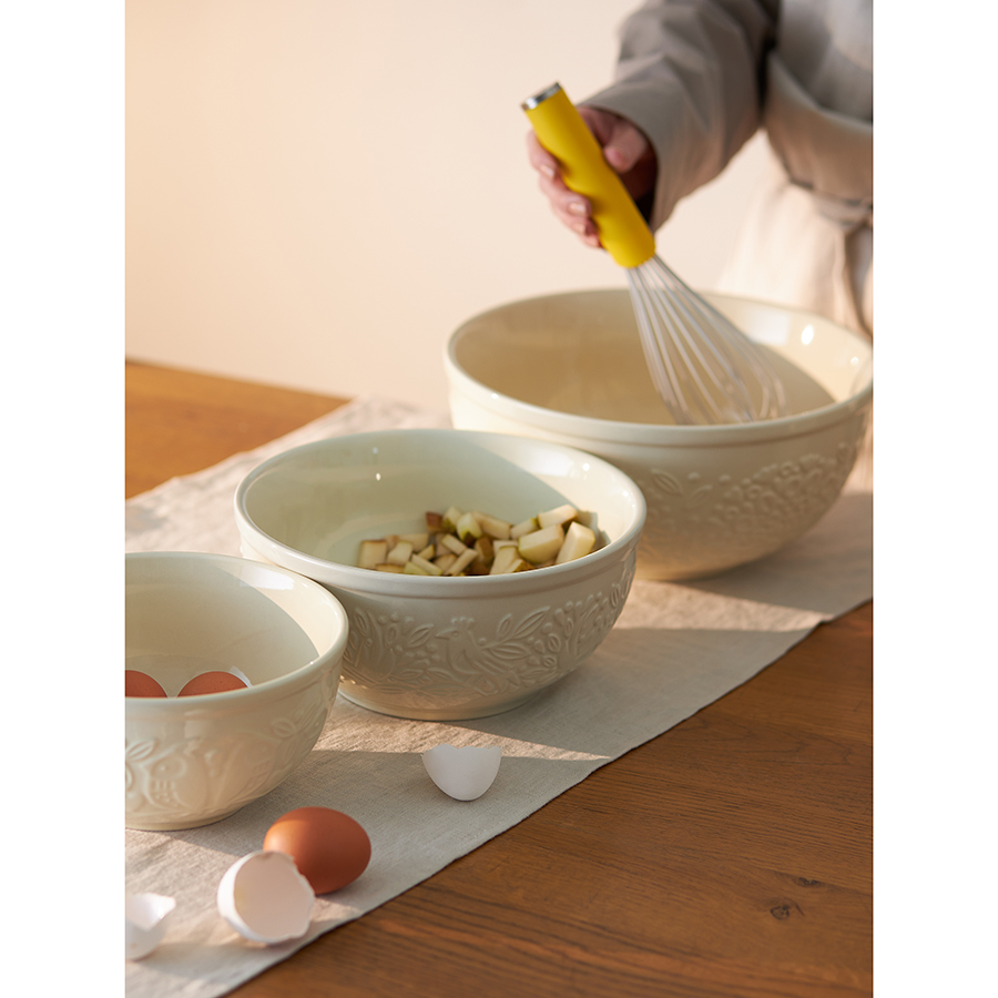 Миска из коллекции Birds of Paradise – качественная посуда из экологичной каменной керамики, которая облегчает процесс готовки и делает интерьер любой кухни более уютным. Отличительной особенностью серии является объемный узор природной тематики, добавляющий дизайну элегантные нотки. Благодаря высокой прочности и устойчивости материала к износу изделие не теряет привлекательный внешний вид на протяжении всего срока службы. Покрытие глазурью упрощает уход, обеспечивает декоративность и дополнительную защиту от внешних воздействий. Глубокая емкость идеально подходит для смешивания ингредиентов во время приготовления различных блюд.