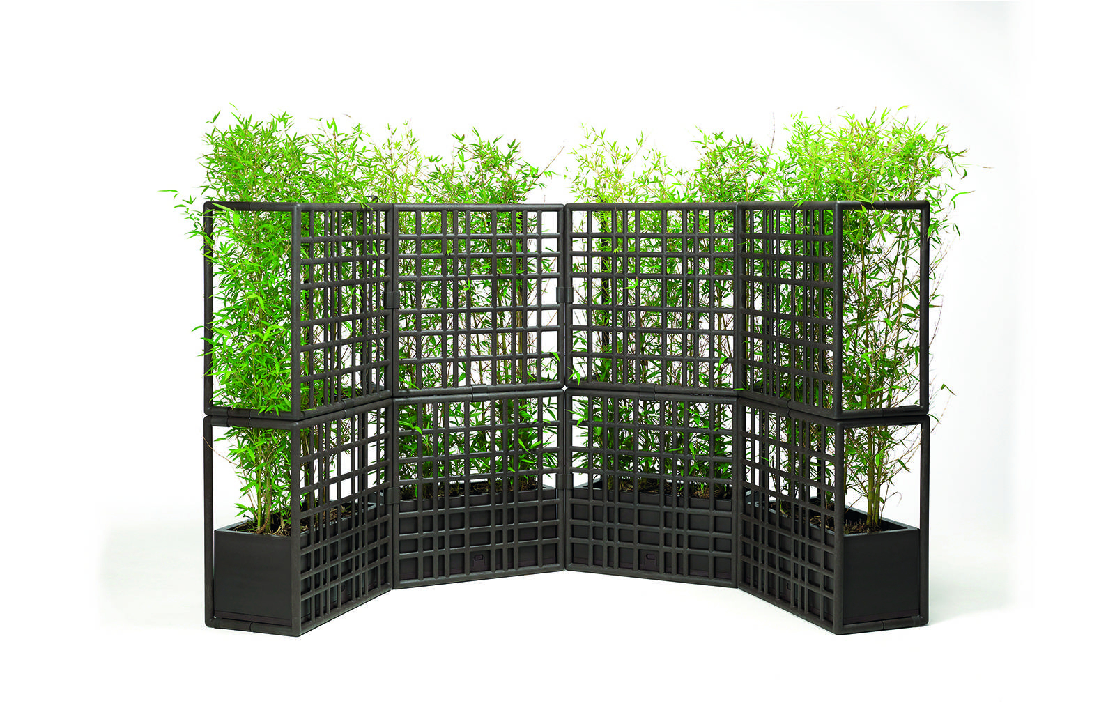 Sipario - это оригинальная модульная система уличных ограждений из регенерированного стеклопластика с кашпо. Модули с асимметричной сеткой можно соединять вместе без использования винтов и свободно комбинировать по вертикали или горизонтали, дополняя внешний вид окружающего пространства и создавая уединенный уголок. Линейные, ломаные и изогнутые модульные конфигурации помогают стильно и композиционно разделить пространство в саду. Отличное решение для летних площадок кафе и ресторанов.