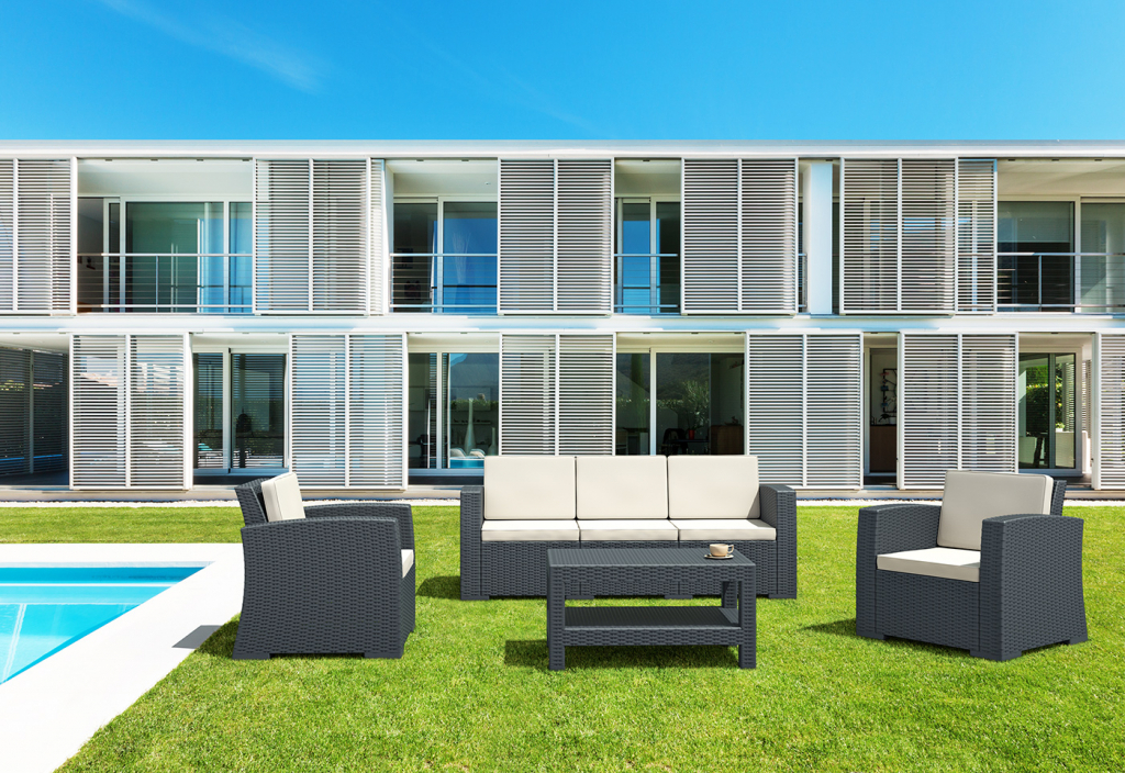Комплект пластиковой плетеной мебели Monaco Lounge изготовлен из прочного погодостойкого пластика, армированного стекловолокном.