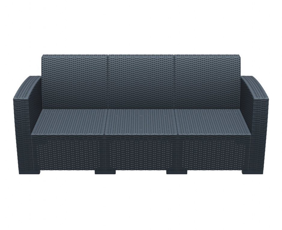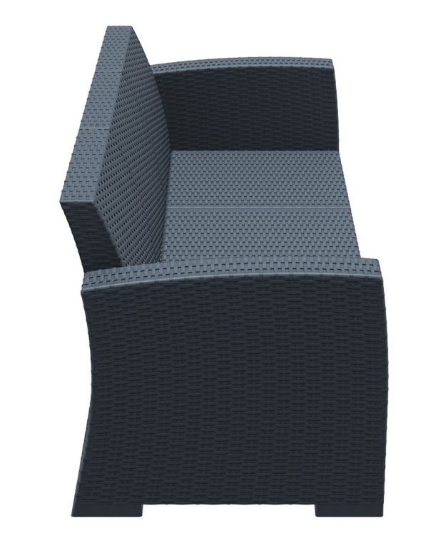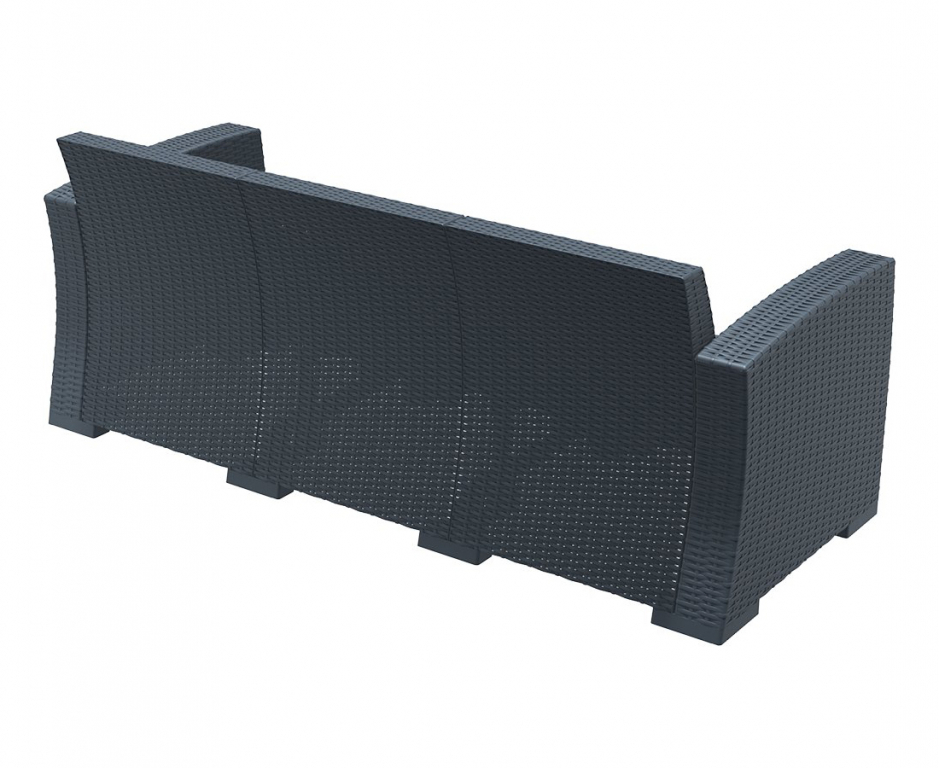 Пластиковый плетеный диван Monaco Lounge изготовлен из прочного погодостойкого пластика, армированного стекловолокном. Пластиковые диваны серии Monaco Lounge с имитацией плетения натурального ротанга станут отличным выбором для обстановки лаунж-зон различных заведений. Благодаря использованию высококачественных материалов они долгое время не теряют своего привлекательного внешнего вида, даже несмотря на активную эксплуатацию. Благодаря отсутствию металлического каркаса и устойчивости к ультрафиолетовому воздействию плетеные диваны из пластика Monaco Lounge можно использовать в том числе и на открытых площадках. Подушки на сиденье и спинке толщиной 7 см покрыты полиэстеровой тканью и заканчиваются кантом. Обеспечивают дополнительное удобство и комфорт сидящему. Подушки изготовлены из синтетической ткани, произведенной из полиэфирных волокон, хорошо сохраняют форму, устойчивы к воздействию тепла и света. Особенности: мебель изготовлена из прочного погодостойкого пластика с имитацией плетения натурального ротанга; не имеет металлического каркаса - не ржавеет, не поддается коррозии; устойчива к ультрафиолету и атмосферным осадкам, выдерживает минусовую температуру до 20 градусов; армирована стекловолокном; может быть разобрана; подходит для использования на открытом воздухе и в помещении. Характеристики упаковки: Диван: количество в упаковке: 1 шт., размер упаковки: 1250х770х490 мм, объем упаковки: 0.472 м³. Подушка на спинку: количество в упаковке: 4 шт., размер упаковки: 600х390х280 мм, объем упаковки: 0.063 м³. Подушка на сиденье: количество в упаковке: 4 шт., размер упаковки: 600х600х280 мм, объем упаковки: 0.1 м³.