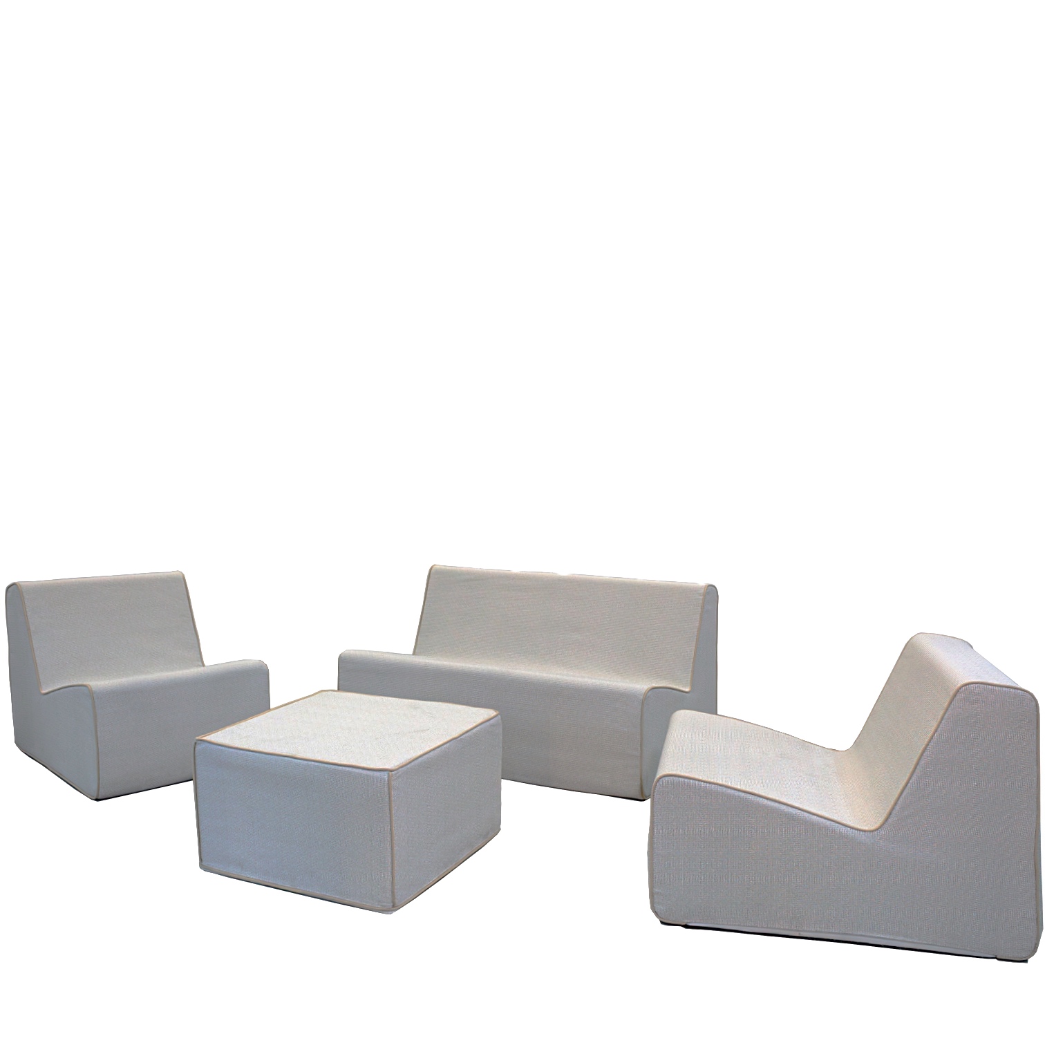 Комплект лаунж мебели Montenegro состоит из дивана, кресел и пуфа, который можно использовать как журнальный столик.