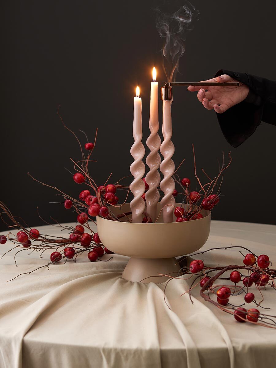 Набор аксессуаров для свечей из коллекции Essential создан для ценителей уюта и атмосферного освещения. В комплект входят ножницы для подрезания фитиля и специальный гаситель, который помогает безопасно погасить пламя без дыма и искр.
