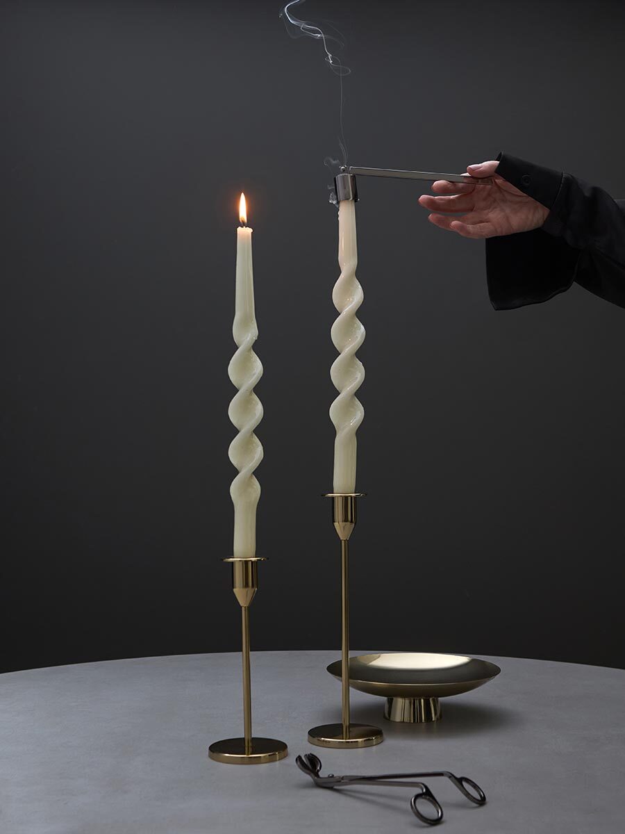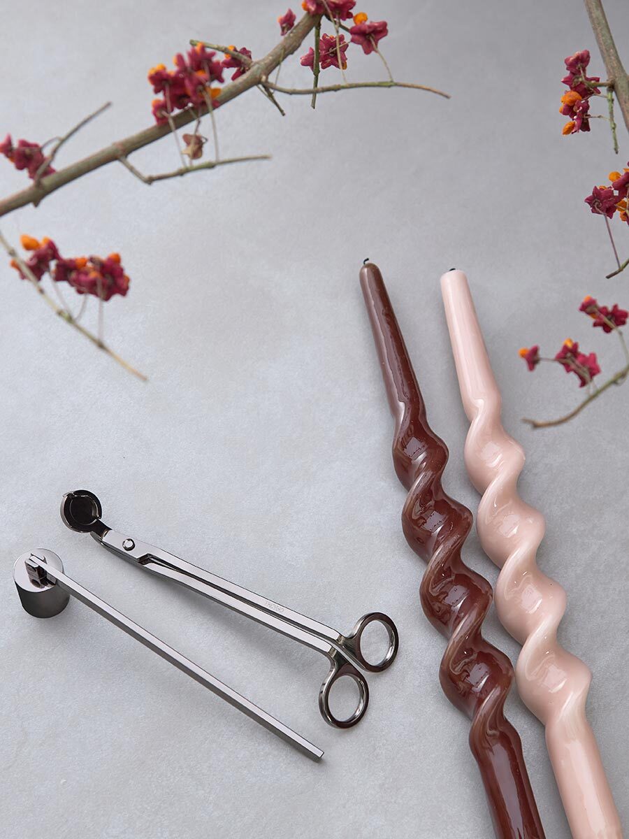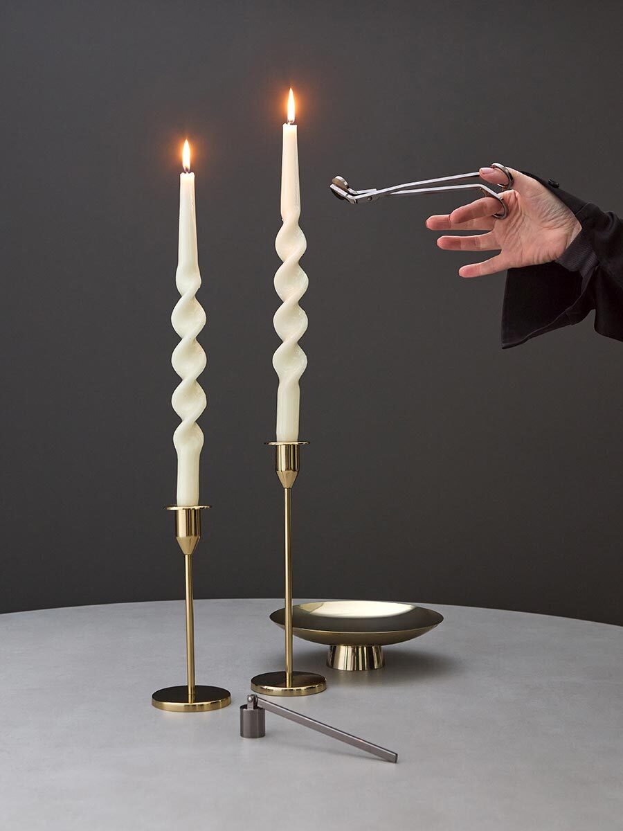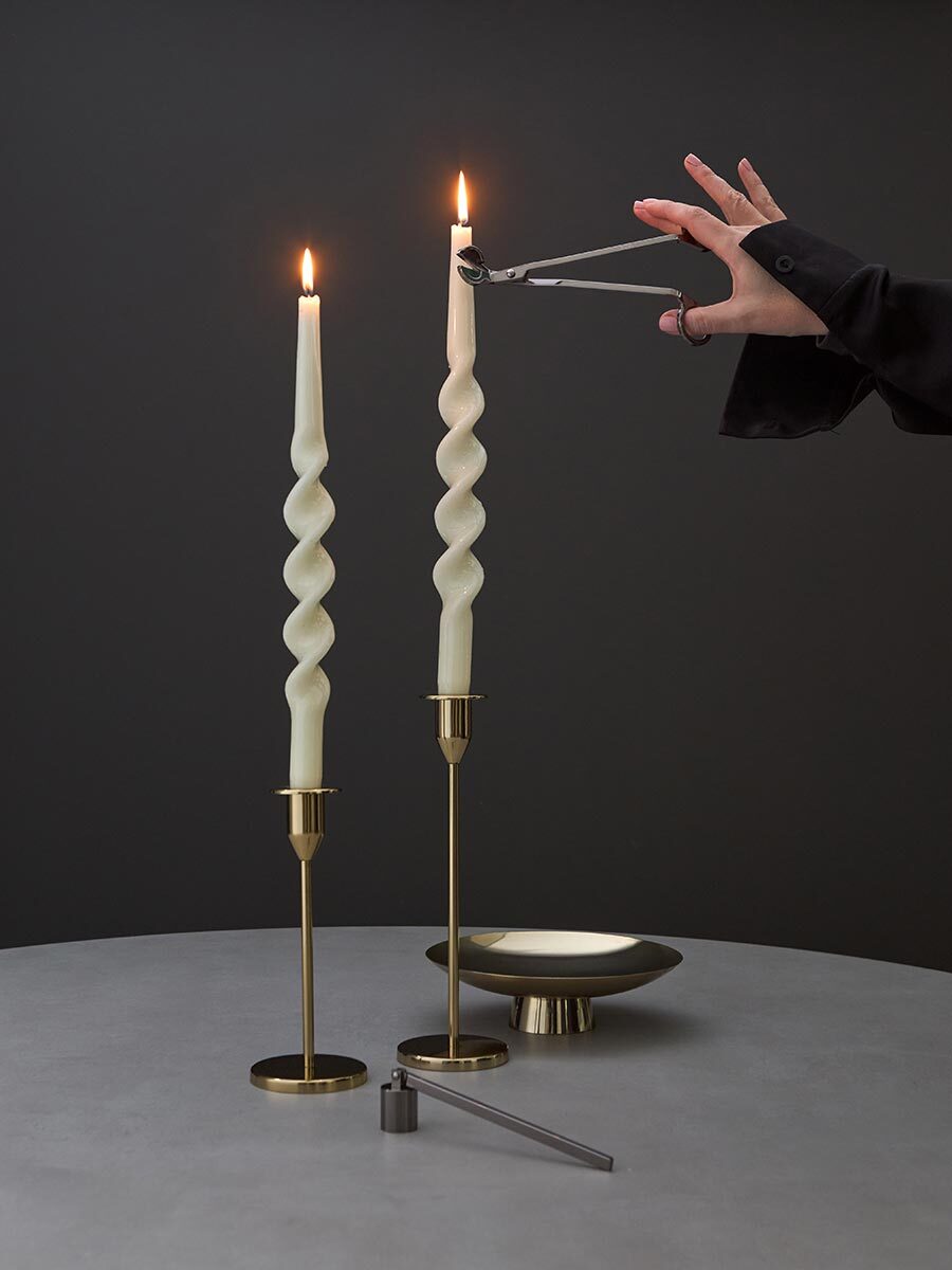 Набор аксессуаров для свечей из коллекции Essential создан для ценителей уюта и атмосферного освещения. В комплект входят ножницы для подрезания фитиля и специальный гаситель, который помогает безопасно погасить пламя без дыма и искр.