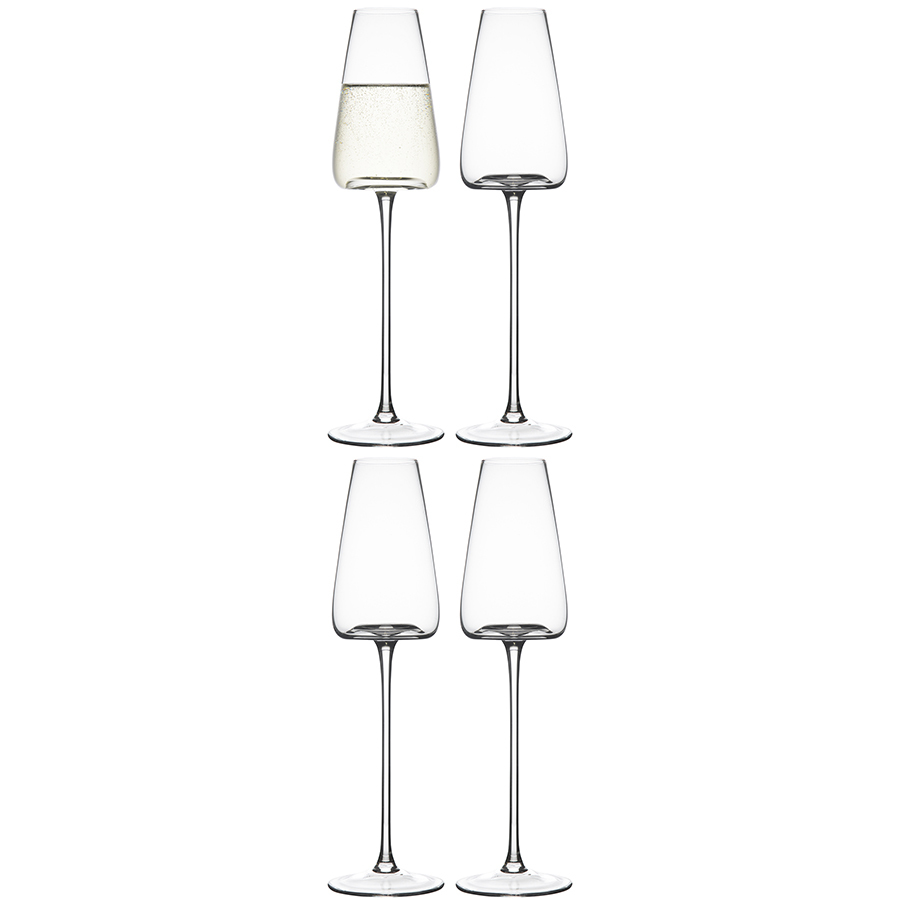 Бокалы для шампанского из коллекции Sheen от бренда Liberty Jones – великолепное дополнение к любому праздничному столу. Изящная посуда из стекла ручной работы отличается утонченным дизайном и прекрасными эксплуатационными характеристиками. Особая форма в виде тюльпана позволяет в полной мере раскрыть вкус и аромат любимого напитка. Такой дизайн идеально подходит для винтажных и изысканных марок игристых вин. Специальное углубление на дне бокала создает эффект “клубящихся пузырьков”, что делает подачу шампанского более эффектной.