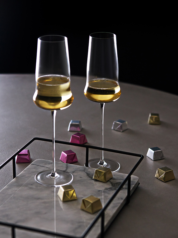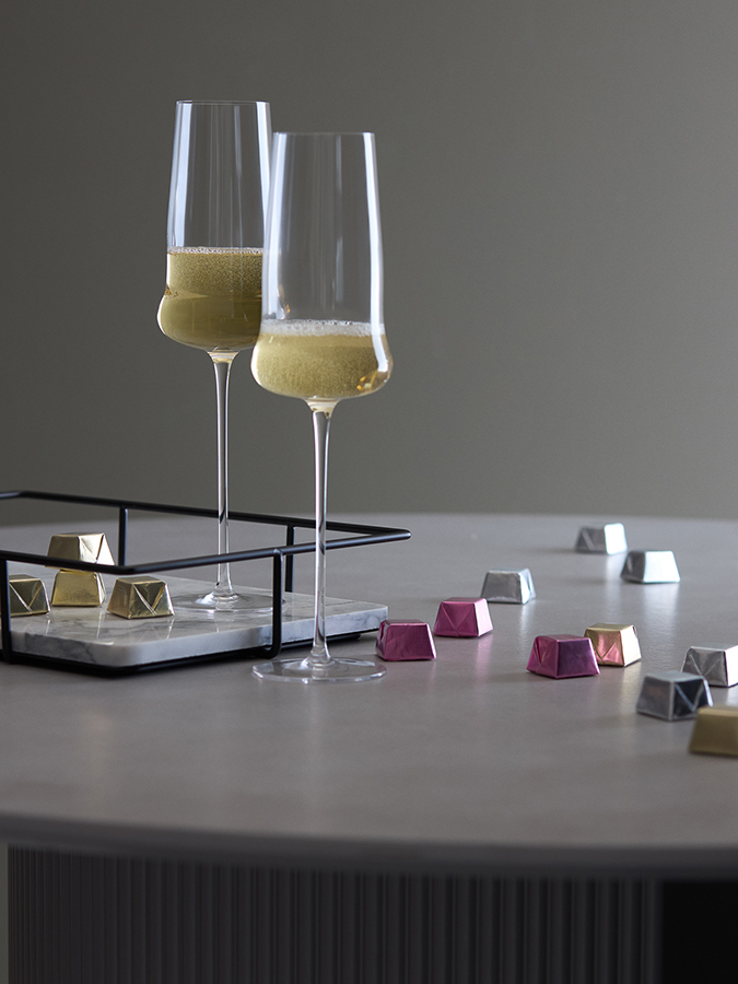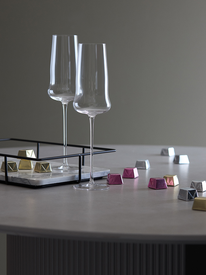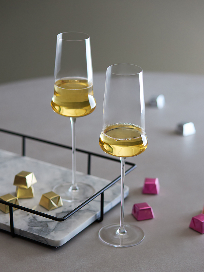 - Удлиненная ножка создает изысканный, утонченный силуэт и не дает шампанскому нагреваться от руки.