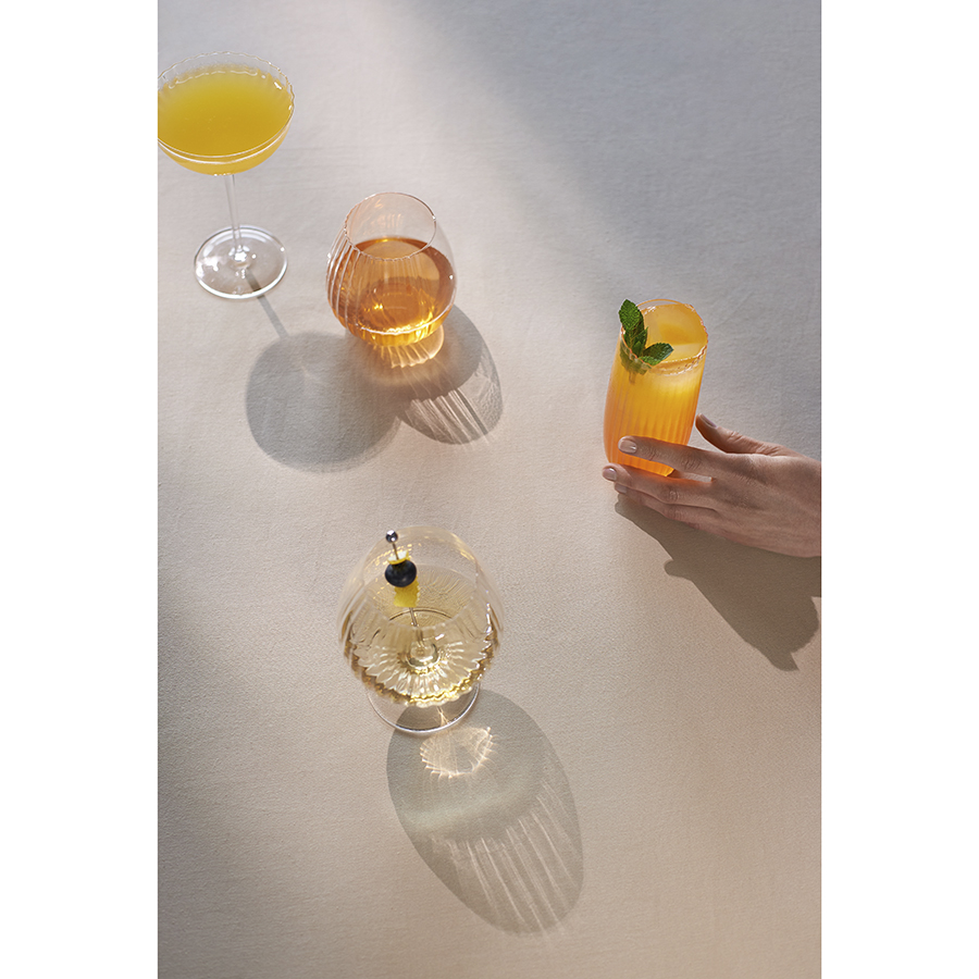 Уникальная дизайнерская коллекция Alice позволит вам окунуться в сказочную атмосферу страны чудес, где реальность превращается в фантазию, а зазеркалье открывает новые грани красоты! Каждый бокал и стакан – это неповторимое произведение искусства из выдувного стекла ручной работы. Главной особенностью линейки является необычное сочетание гладких и рельефных поверхностей, а также золотистые акценты, которые создают волшебные блики и усиливают блеск стеклянных граней.