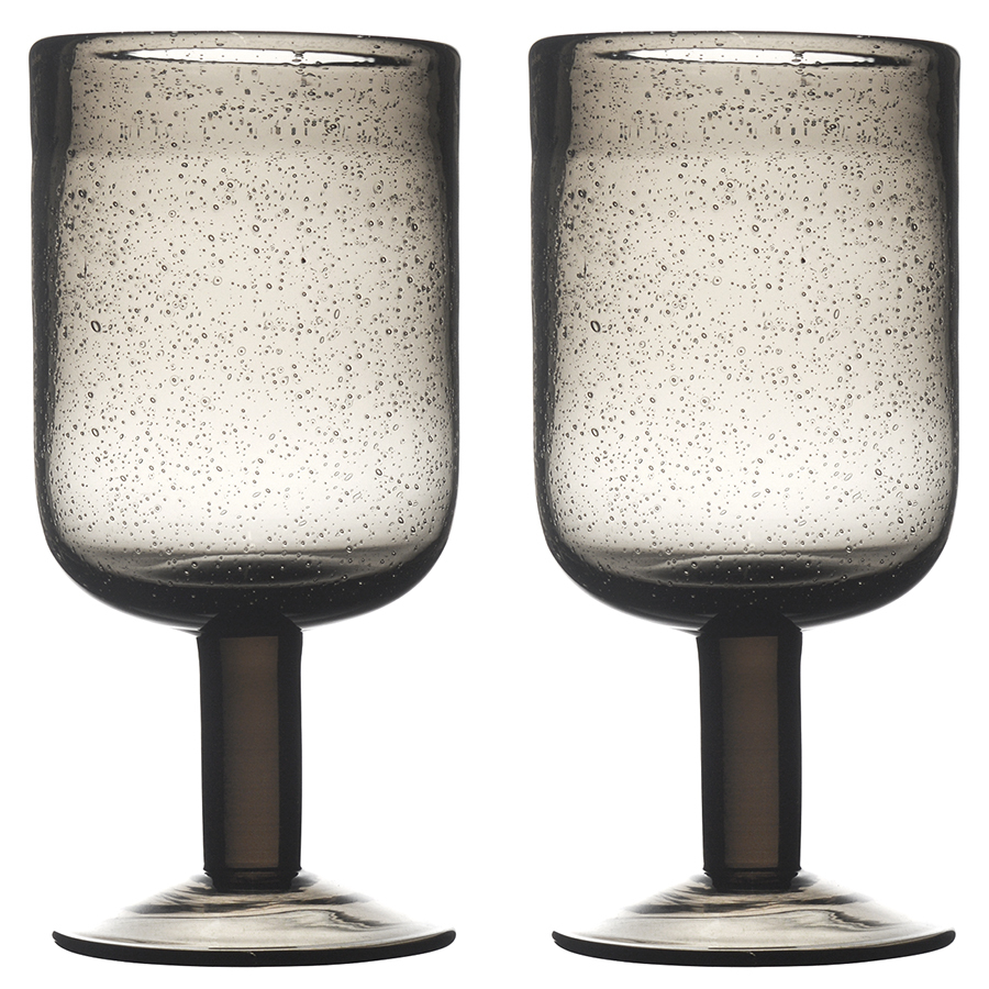 Бокалы для вина из коллекции Flowi от бренда Liberty Jones привлекают внимание необычным дизайном. Изделия выполнены вручную из переработанного стекла, поэтому их размеры, а также рисунок пузырьков будут отличаться от фото: сами пузырьки могут быть разного размера и формы, а также могут образовывать неравномерные скопления. Это создает эффект настоящего потока воды, застывшего в стенке бокала. Такое исполнение делает каждое изделие уникальным, что является важной чертой коллекции Flowi: через легкую небрежность ее контуров и текстуры создается впечатление живого течения реки, которая в бурлящем потоке смешивает воду и воздух. Материал: стекло ручной работы. Объем: 410 мл. Цвет: серый. Количество предметов в наборе: 2 шт. Можно мыть вручную и в посудомоечной машине.