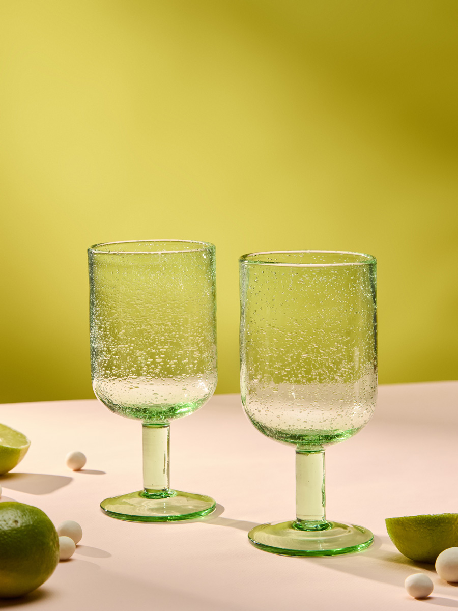 Бокалы для вина из коллекции Flowi от бренда Liberty Jones привлекают внимание оригинальным дизайном. Изюминка серии – необычный декор в виде пузырьков воздуха. Изделия выполнены из высококачественного стекла, вручную. Износостойкий материал обеспечивает посуде несложный уход и долгий срок службы.