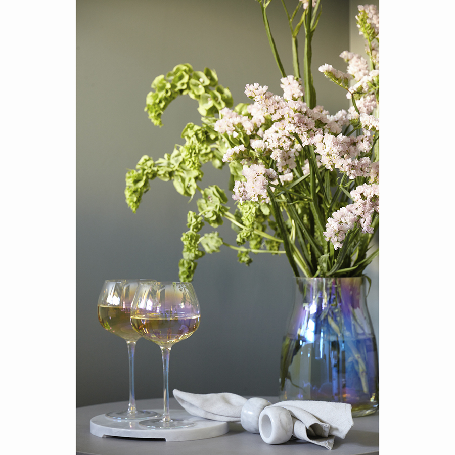 Линейка Gemma Opal привлекает лаконичным дизайном и необычным цветовым решением в виде радужных переливов. Вся посуда выполнена вручную из выдувного стекла. Такой способ производства позволяет играть с линиями и изгибами, создавая уникальные и неповторимые продукты. Изделия получаются более прочными, но при этом тоньше и прозрачнее аналогов из обычного стекла.