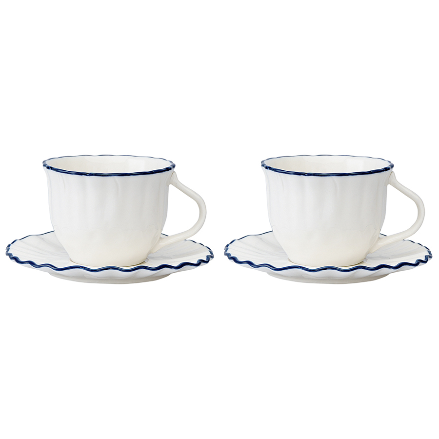 Чайные пары из коллекции Santorini от бренда Liberty Jones воплощают в себе элегантность посуды из фарфора, привлекая необычным дизайном с контрастными акцентами.