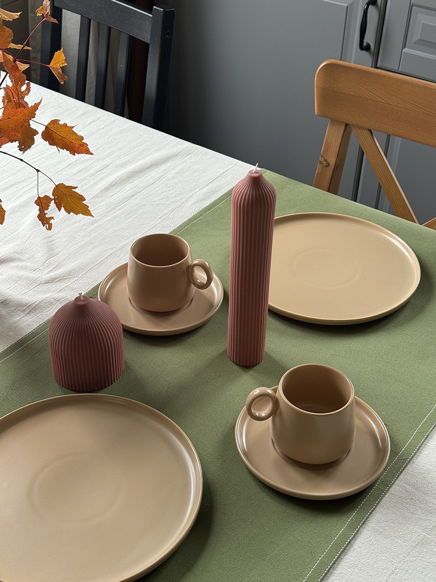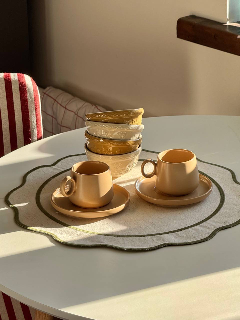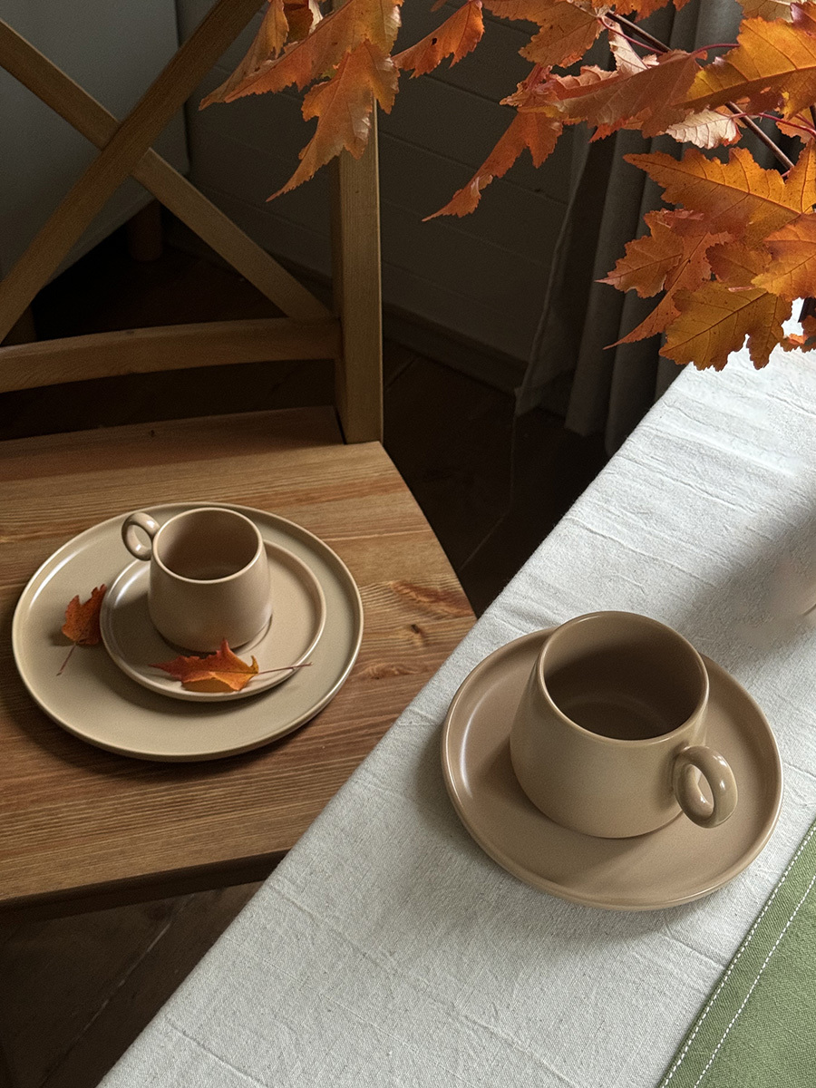 Набор из двух фарфоровых чайных пар нежного бежевого цвета подойдет как для праздничной сервировки, так и для ежедневного чаепития. Сдержанный скандинавский дизайн чашек и блюдец станет украшением вашей кухни, а необычная форма будет радовать каждый день. Гладкая фарфоровая поверхность с приятным, чуть приглушенным глянцем благородно выглядит и вместе с тем очень практична — не царапается и легко отмывается от загрязнений. Чайные пары можно дополнить другими предметами из серии Essential — например, тарелками, блюдами и салатниками.