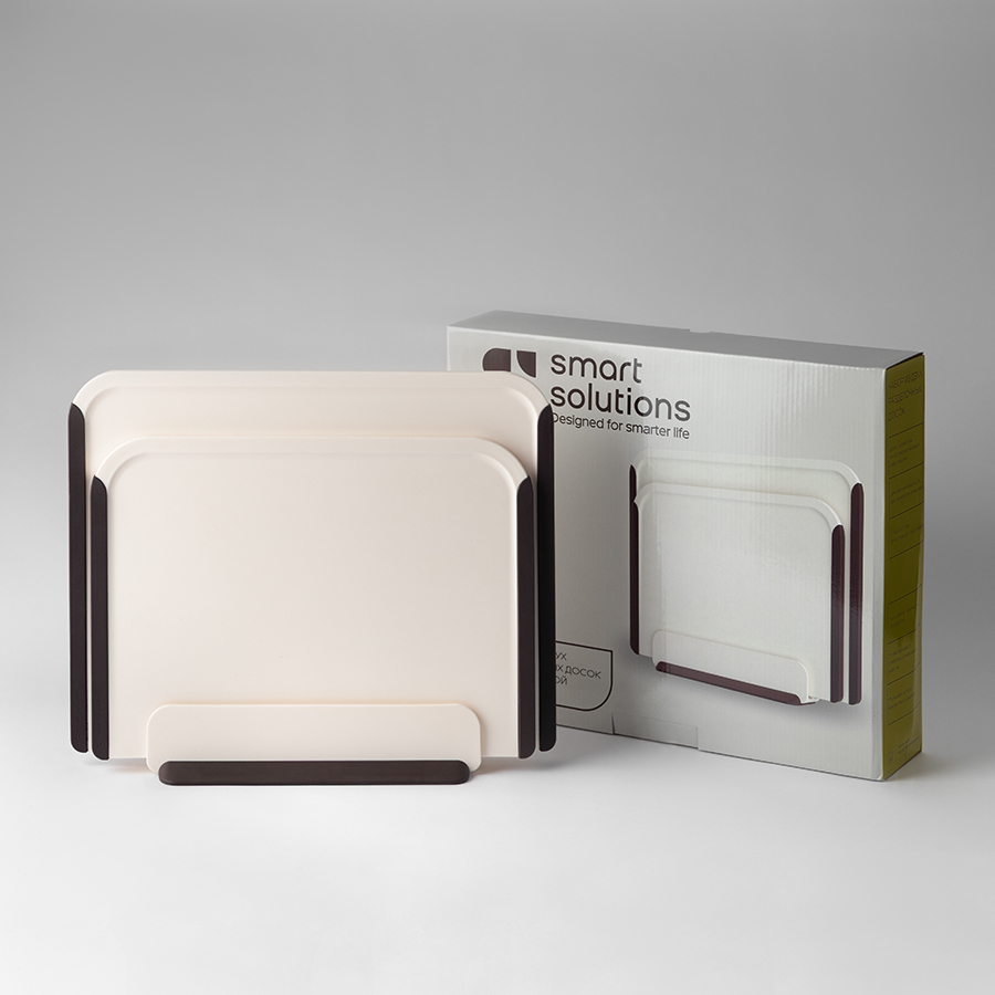 Набор SmartChef от дизайнерского бренда Smart Solutions включает в себя две разделочные доски различных размеров и специальную подставку для их удобного размещения.