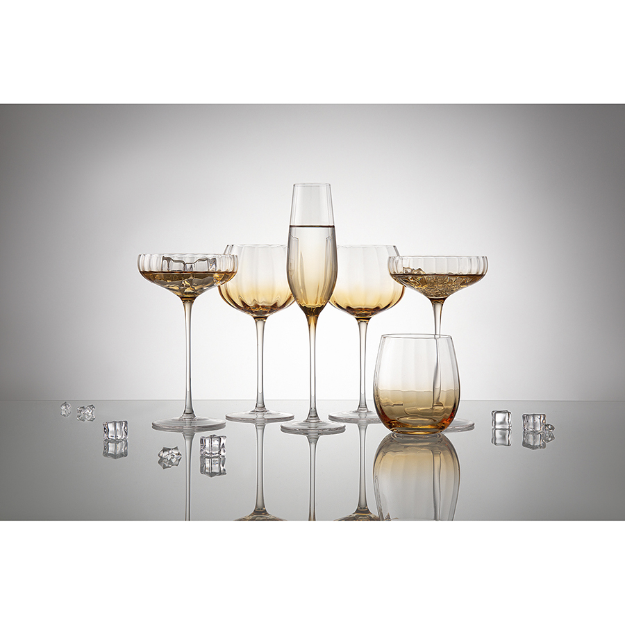 Линейка Gemma Amber привлекает лаконичным дизайном и стильным цветовым решением с теплыми янтарными акцентами. Вся посуда выполнена вручную из выдувного стекла. Такой способ производства позволяет играть с линиями и изгибами, создавая уникальные и неповторимые продукты. Изделия получаются более прочными, но при этом тоньше и прозрачнее аналогов из обычного стекла.