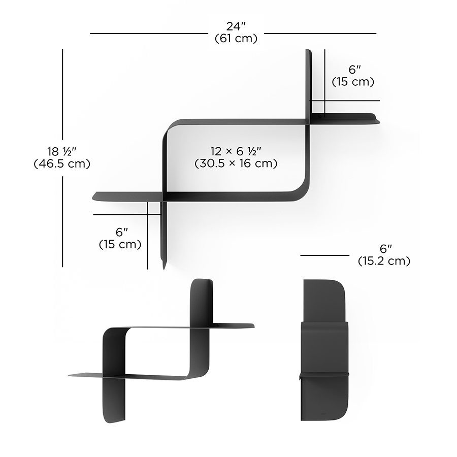 Полки настенные Montage идеально подходят для хранения различных предметов – декора, книг, кашпо с цветами и других. Изготовленные из стали, они выдерживают высокие нагрузки, а также могут размещаться, как в горизонтальном, так и вертикальном положении. Благодаря минималистичному дизайну и нейтральному цвету эти полки легко интегрируются в любые интерьерные решения. Материалы: сталь. Размеры: 47Х61х15 см. Цвет: черный. Пыль и загрязнения с поверхностей можно удалять при помощи мягкого влажного материала. Запрещается использование абразивов и агрессивной бытовой химии.