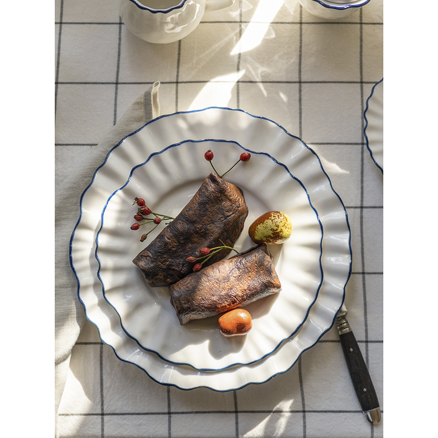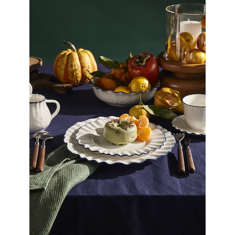 Тарелки обеденные из коллекции Santorini от бренда Liberty Jones воплощают в себе элегантность посуды из фарфора, привлекая необычным дизайном с контрастными акцентами.