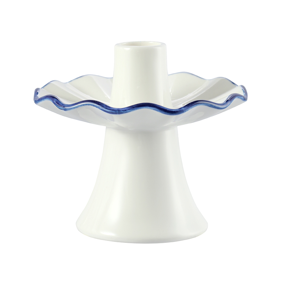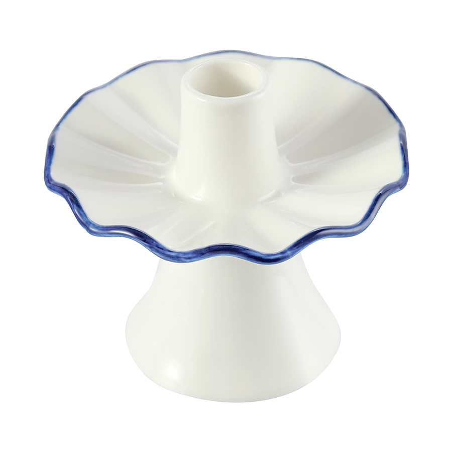 - Акцентная голубая кайма придает белоснежным подсвечникам особую элегантность.