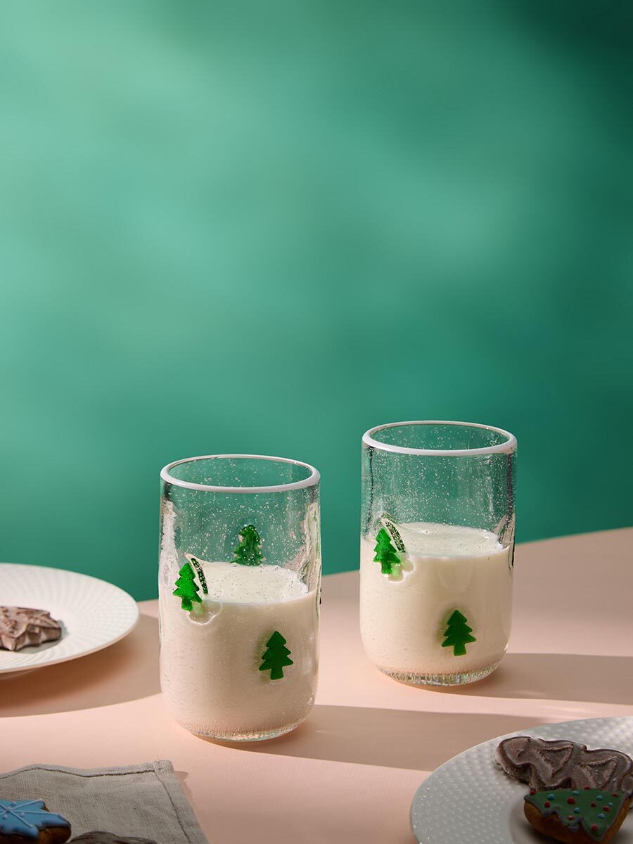 Набор стаканов Flowi Winter придется по душе тем, кому нравится создавать новогоднее настроение из необычных мелочей. Эта посуда привлекает внимание уникальным дизайном – стенки стаканов украшены интересным декором – миниатюрными стеклянными елочками.