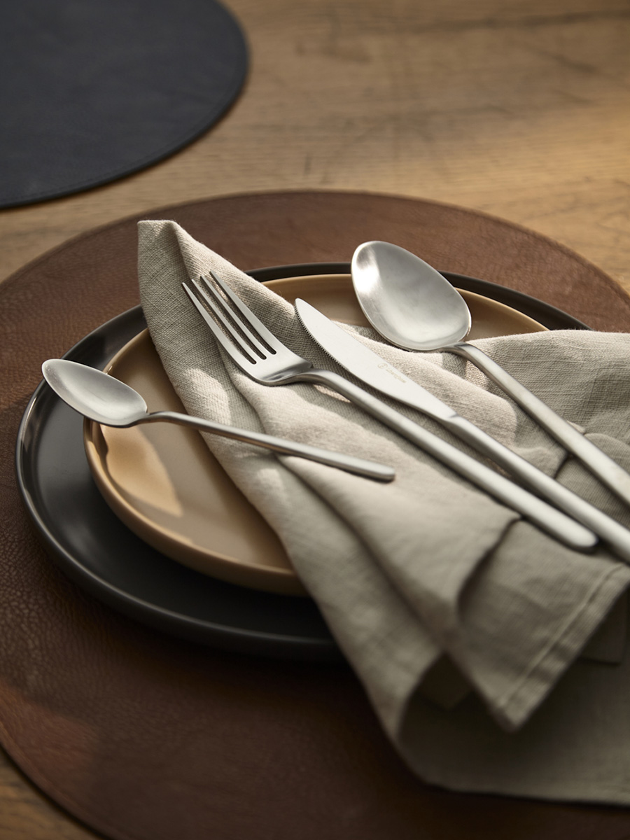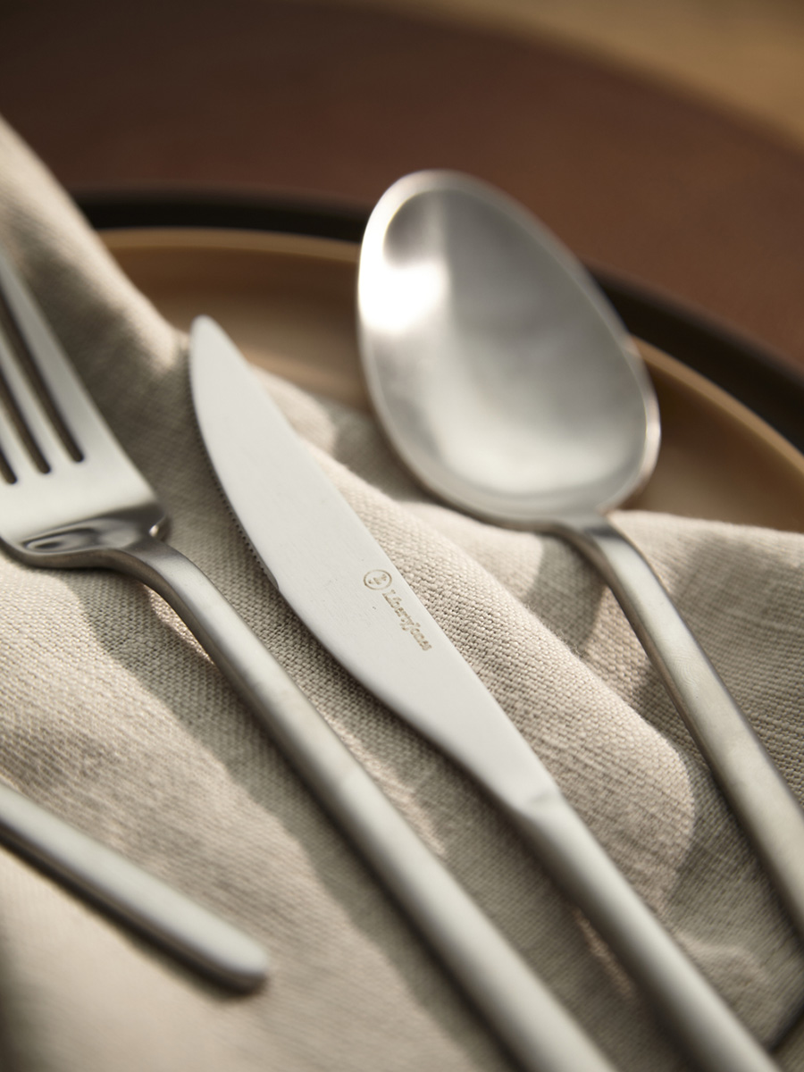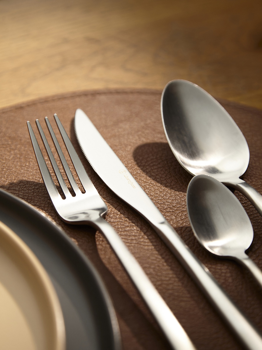 - Столовые приборы серебристого цвета с матовой полировкой отлично подойдут для сервировки в традиционном и современном стиле. Их сдержанная элегантность прекрасно гармонирует с простыми формами и нейтральными цветами.