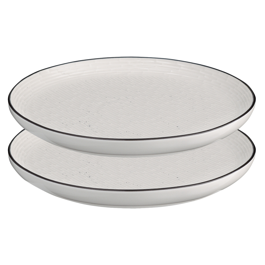 Тарелки для сервировки из белоснежного фарфора серии Contour великолепно дополнят коллекцию стильной и практичной посуды. Рельефная поверхность и декоративная окантовка придают емкостям оригинальный вид. Материал изготовления неприхотлив в уходе, не впитывает загрязнения, является экологичным и безопасным для здоровья. Тарелки идеально подходят для подачи вторых блюд.