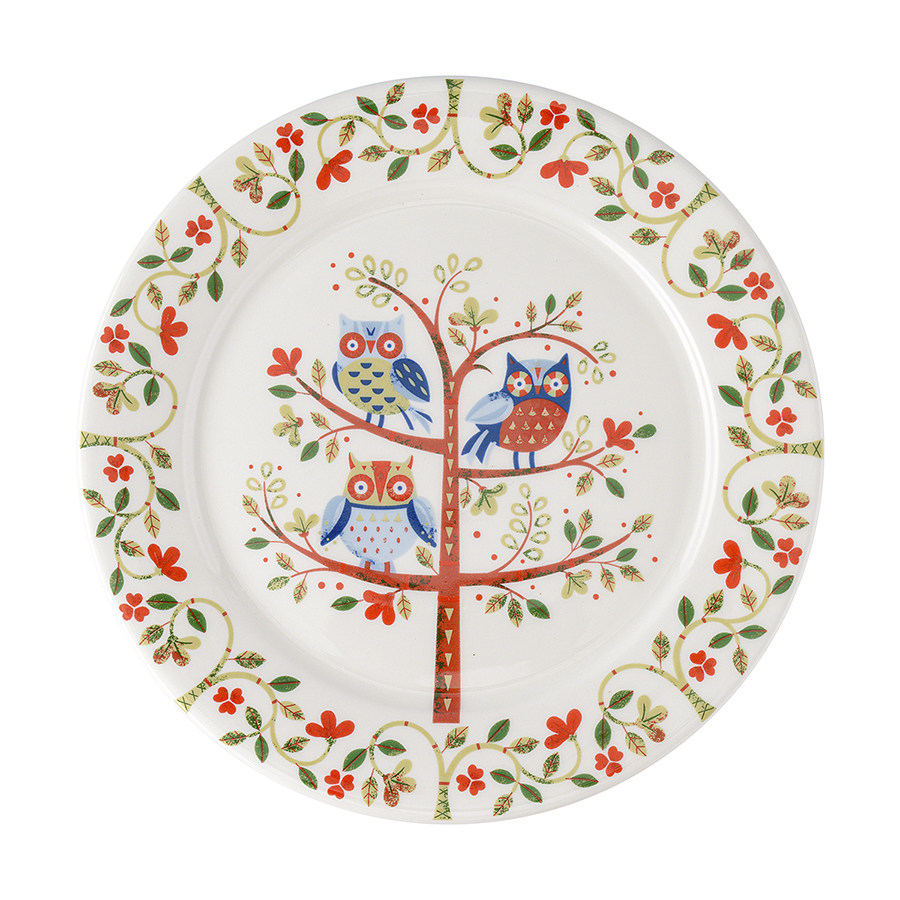 Набор тарелок Owl из коллекции Birds of Paradise – красивая и качественная посуда из фарфора, которая украсит интерьер кухни и сделает любую сервировку особенной. Особенности и преимущества: - Нанесение слоя глазури поверх узора позволяет изделиям сохранять безупречный вид долгие годы, даже после воздействия высоких температур и частого мытья в посудомоечной машине. - Тарелки из высококачественного глазурованного фарфора имеют идеально гладкую поверхность, с которой легко удаляются любые загрязнения. - Материал обладает прочностью, является экологичным, безопасным для здоровья, не подвержен старению. - Яркий принт природной тематики приковывает взгляды и позволяет посуде стать настоящим украшением любого стола. - Набор поставляется в фирменной подарочной упаковке. Коллекция Birds of Paradise разработана английской художницей Karen Wall, основным направлением творчества которой является создание иллюстраций для посуды, домашнего текстиля и детских книг. В основе дизайна – природные мотивы, вдохновленные традиционным фольклором Великобритании 19-го века. Атмосфера волшебного леса с райскими птицами погружает в мир добрых грез и фантазий, где всегда тепло, уютно и есть место чудесам. Наши продукты прошли испытания на отсутствие в составе свинца и кадмия в соответствии со стандартными тестами FDA. Материал: фарфор. Размеры: 21х21х1,85 см. Количество в наборе: 2 шт. Можно мыть в посудомоечной машине, использовать в микроволновой печи и духовке при температуре не более 250° C.