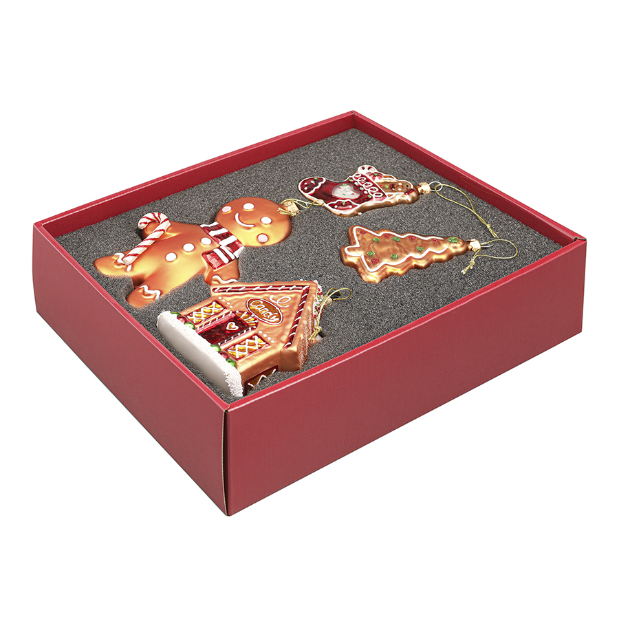 Набор елочных украшений Ginger celebration коллекции New Year Essential словно наполнен благоуханием ароматов корицы и духом рождественских праздников. Аппетитные пряничные фигурки, украшенные цветной глазурью, еще раз напомнят о вкусных лакомствах и добрых новогодних традициях.