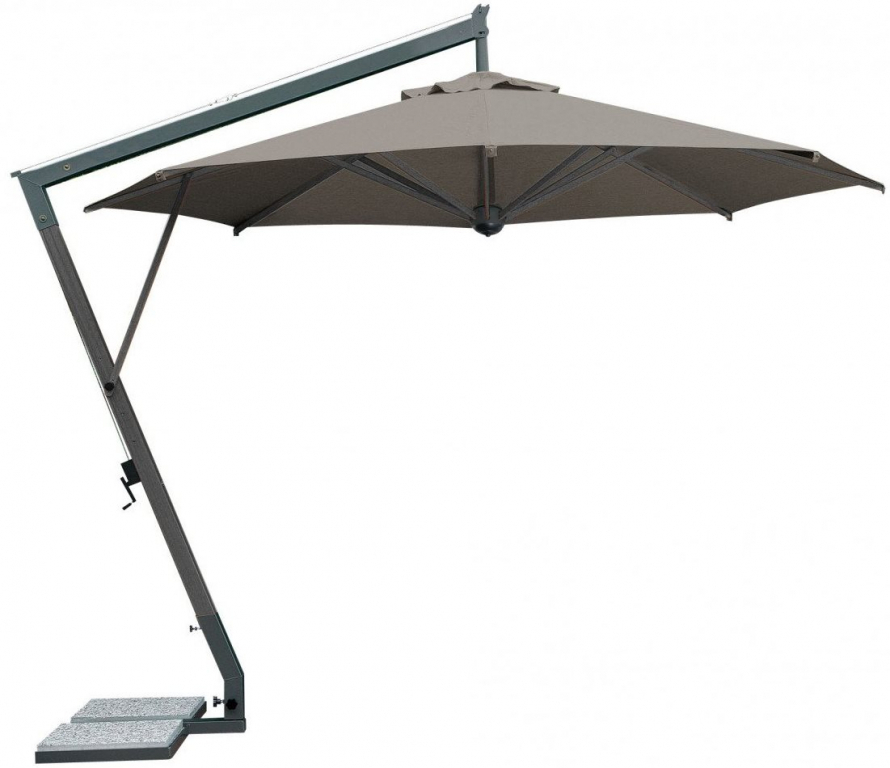 - Купол выполнен из акрила 350 г/м² с пропиткой. Варианты цвета: слоновая кость (A1), терракота (T2), бордовый (T3), серо-коричневый (T6), белый (T7), серебристо-серый (T8), антрацит (T9), черный (S1). Цена на сайте указана для зонта с куполом в цвете слоновая кость (A1) без волана.