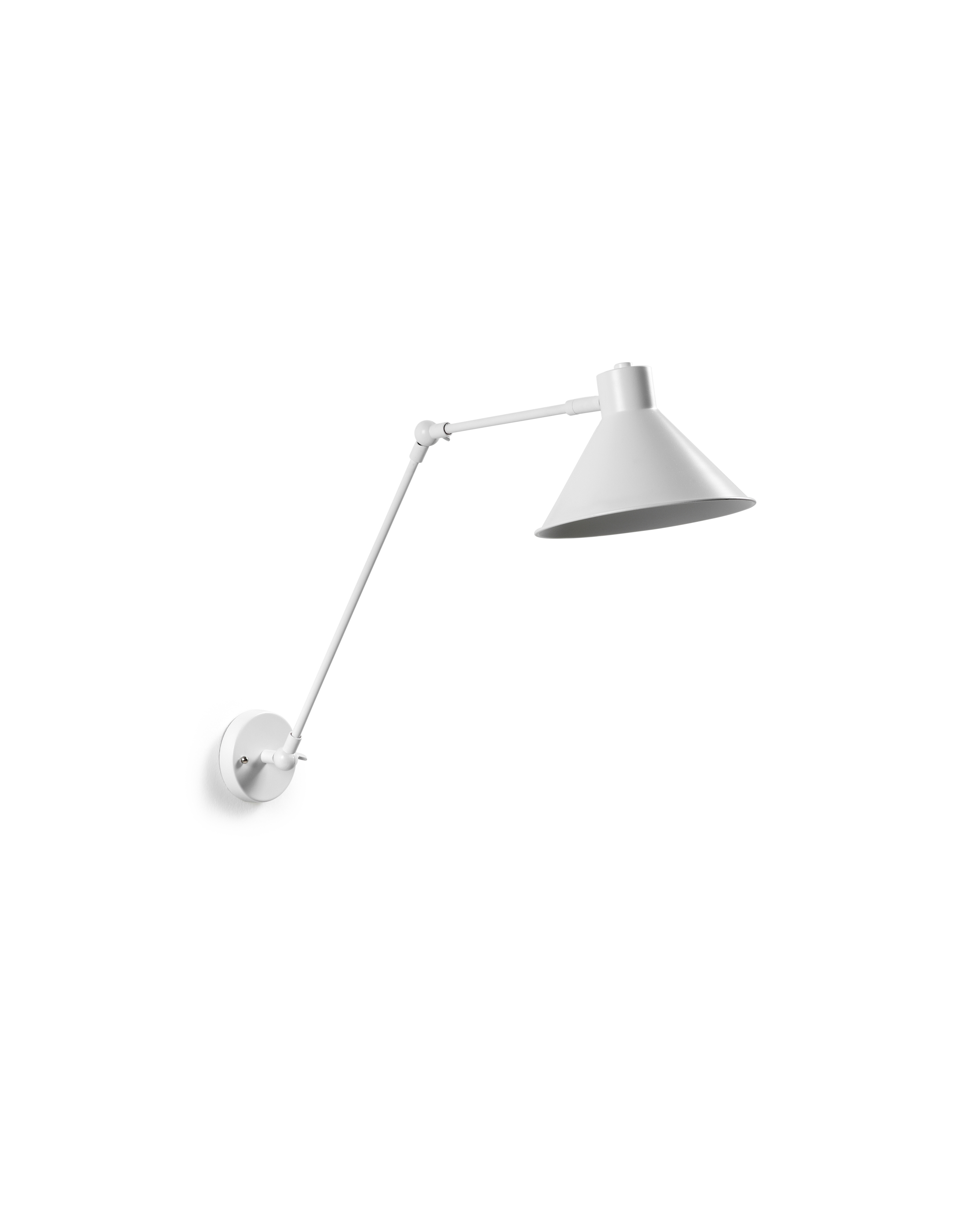 Настенный светильник на шарнире, с металлическим кронштейном и абажуром белого цвета. Для лампы E14, лампа в комплект не входит.