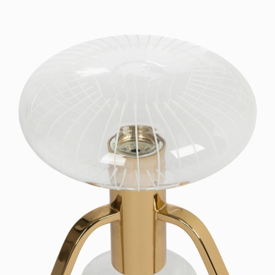 Мягкий свет, рассеянный через стеклянный абажур, создает расслабляющую обстановку, что делает этот светильник идеальным выбором для вечерних встреч или спокойного отдыха. Позвольте этому светильнику стать вашим верным спутником в создании идеальной атмосферы!