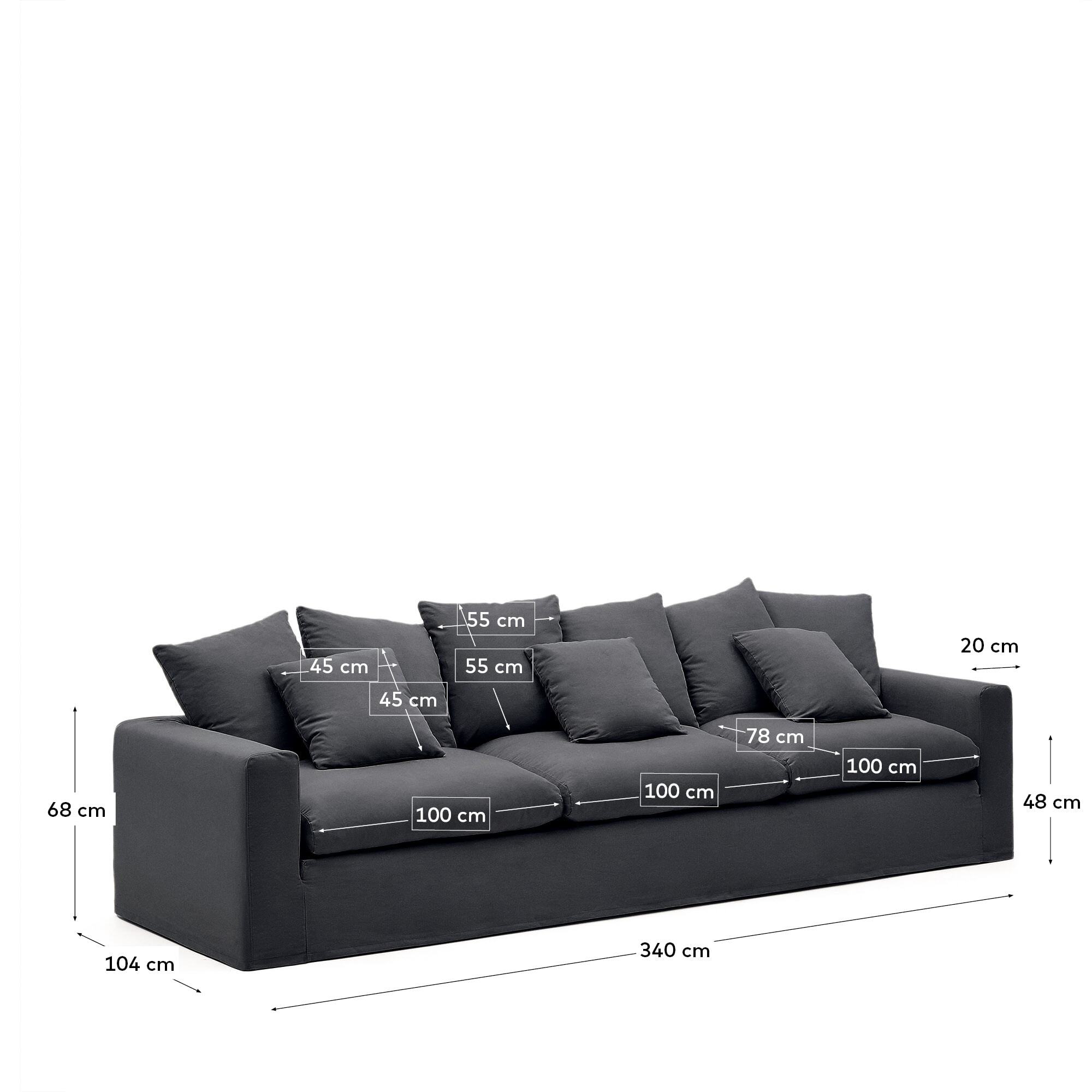 Nora Диван 4-х местный со съемным чехлом серо-антрацитовый из льна и хлопка