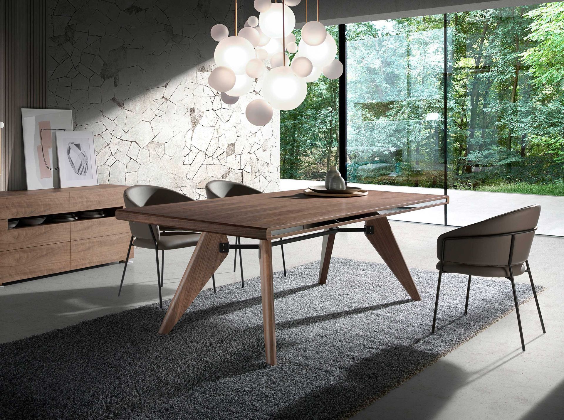 Сочетание орехового дерева, черной стали и зеркального стекла, конечно же, создает современный вид, не забывая при этом о высочайшем комфорте и функциональности. Фундаментальная часть нашей новой коллекции обеденных столов.