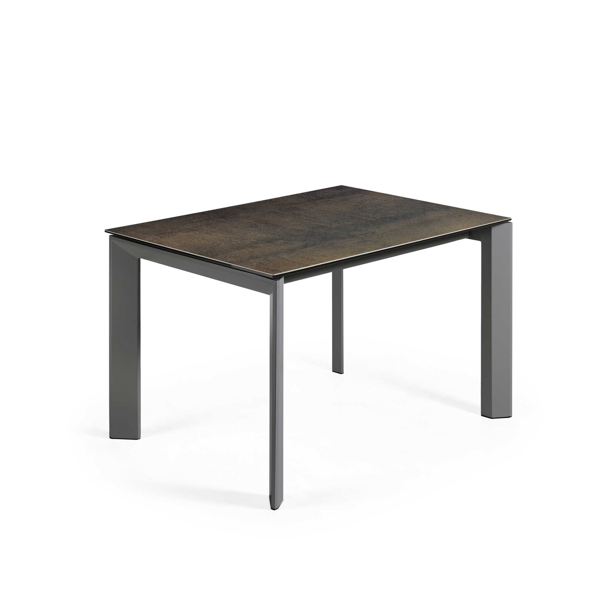 Стол Atta серый керамический от фабрики La Forma – безупречно спрятанная сложная конструкция в простом минимализме. Стол Atta – это победа инженерной мысли. Так мастерски спрятать выдвижной механизм и замаскировать его под тонкой столешницей смогут только профессионалы. Керамика – точно подобранный материал, который делает изделие эффектным, даже несмотря на принадлежность к минимализму. Стол прямоугольной формы. Столешница толщиной 1 см сделана из ударопрочной керамики графитового или коричневого цвета (для базовых моделей). Данный материал практичный, стойко переносит воздействие высоких температур, легко очищается от загрязнений. Выдвижной механизм находится справа. Чтобы раздвинуть стол, необходимо потянуть за ножки и достать сложенную пополам дополнительную панель (она из МДФ). Раздвижной механизм сделан из нержавеющей стали. Опора выполнена из металла, покрыта серой краской. Благодаря поддержке столешницы по всему периметру, обеспечивается стойкость к высоким весовым нагрузкам, правильное распределение веса. Размеры стола: длина – 120-180 см, 140-200 см или 160-220 см, ширина – 90 см, высота – 76 см.