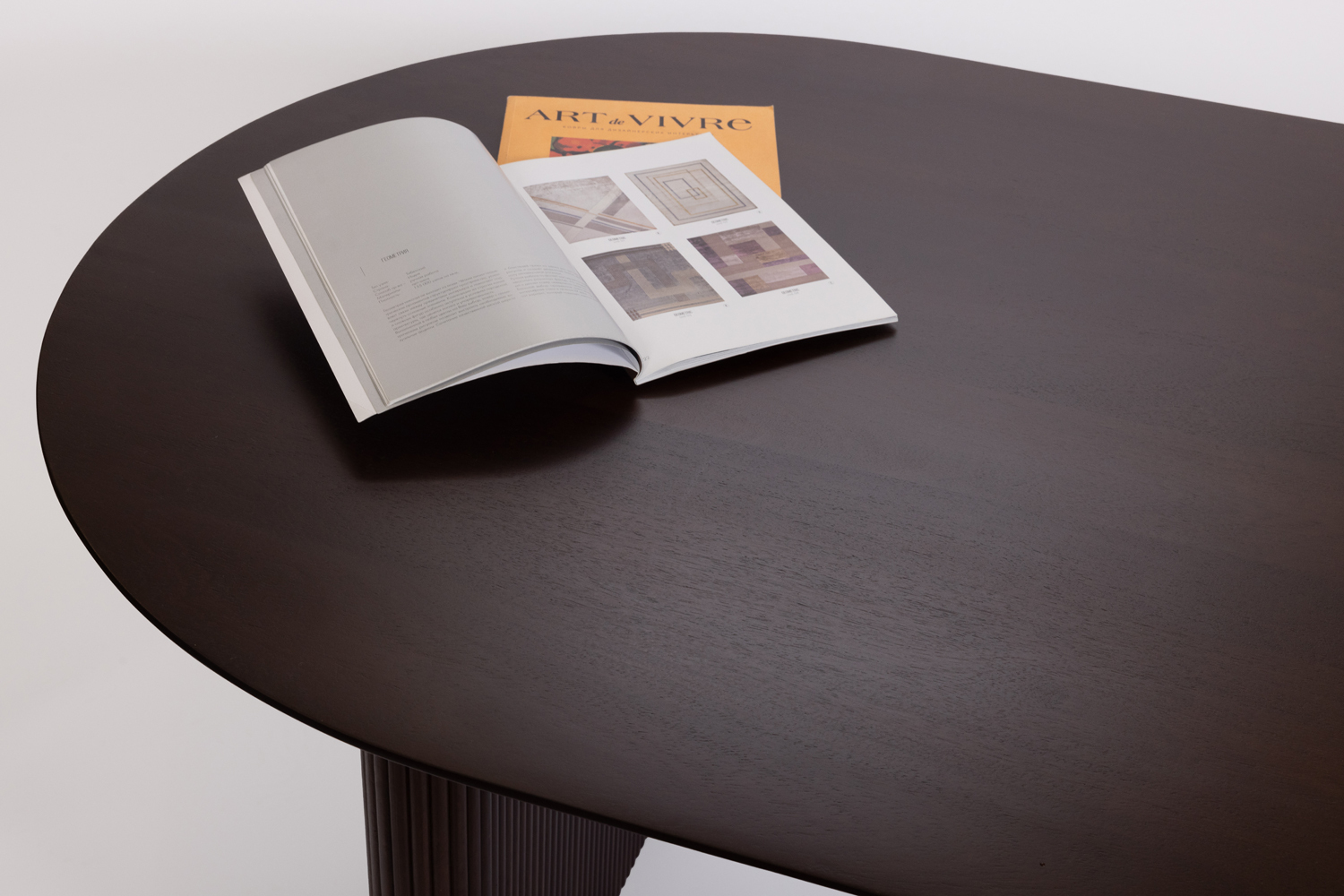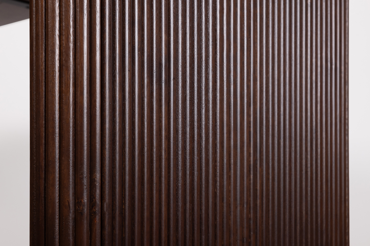 Обеденный стол Mead коричневого оттенка из массива дерева Манго, идеален для современной кухни-гостиной. Опора стола украшена фрезеровкой. Дополните его другой мебелью из коллекции Mead - комодом TA03-M101-01, стеллажом TA03-M101-08, тумбой под ТВ TA03-M101-04 и стульями TA03-M101-03, что позволит организовать пространство в едином стиле.