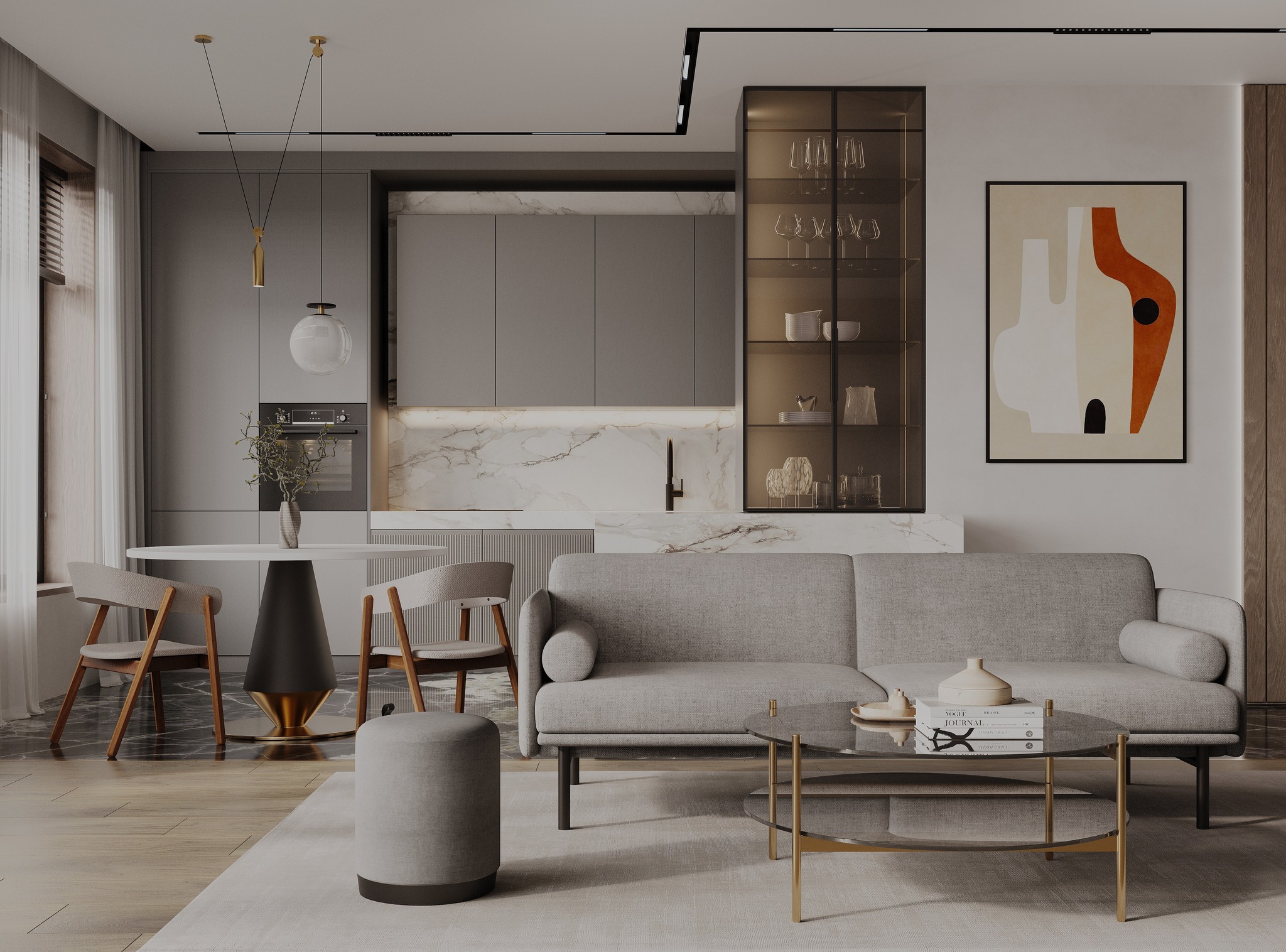 Обеденный стол New Island Ø120 см, белый камень